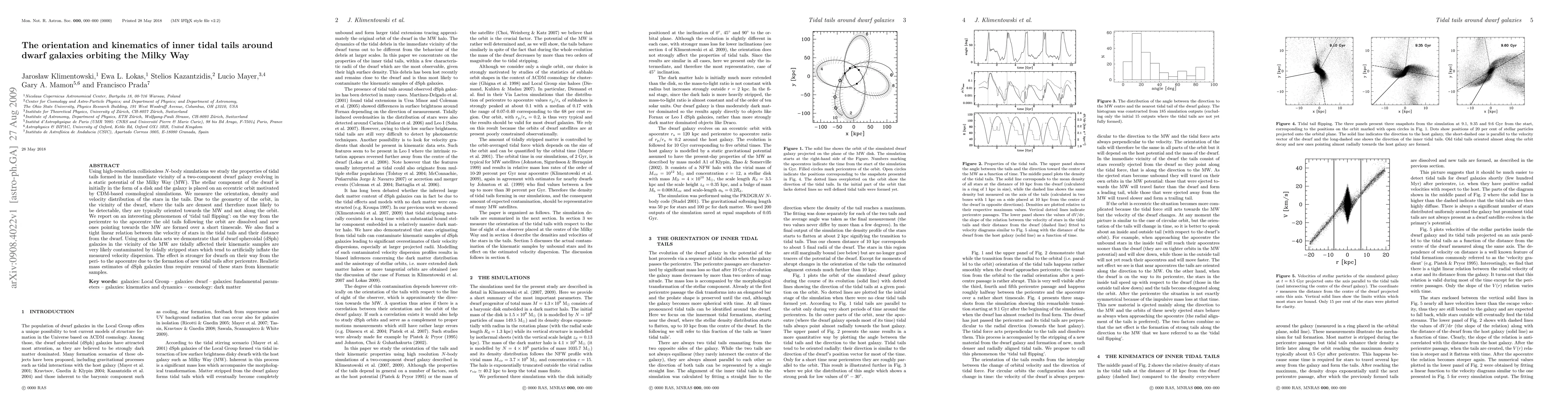 This study uses high-resolution N-body simulations to analyze the orientation and kinematics of tidal tails around dwarf galaxies orbiting the Milky Way. The findings show that tidal tails are typically oriented towards the Milky Way rather than along the orbit, and exhibit a phenomenon called "tidal tail flipping," where new tails form towards the Milky Way as old ones dissolve.