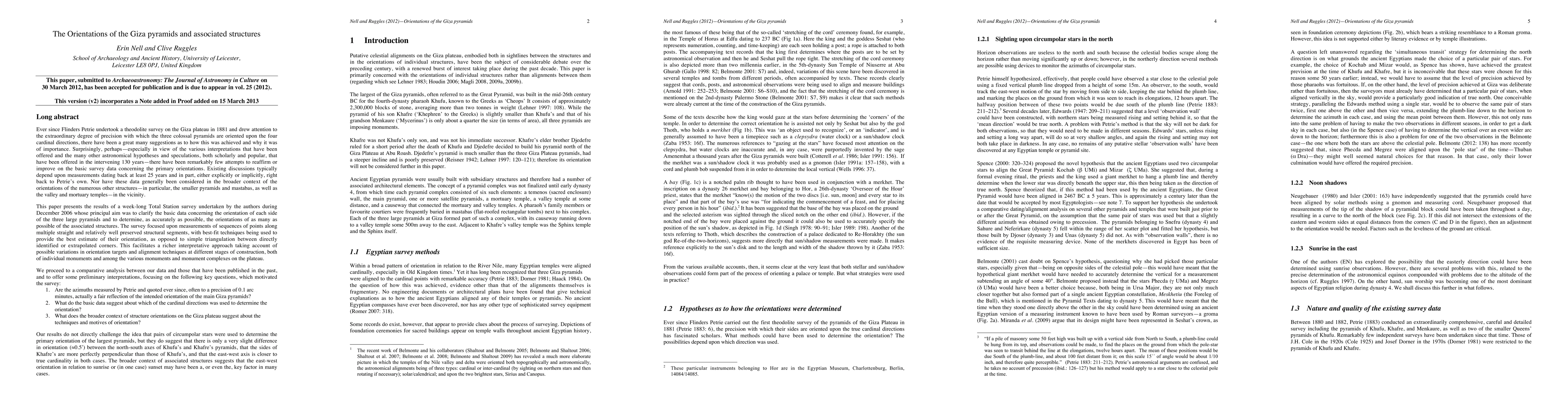 This paper reports on a detailed survey of the Giza pyramids and associated structures, revealing slight differences in orientation between the pyramids and suggesting that east-west alignments may have been crucial, possibly relating to sunrise or sunset.