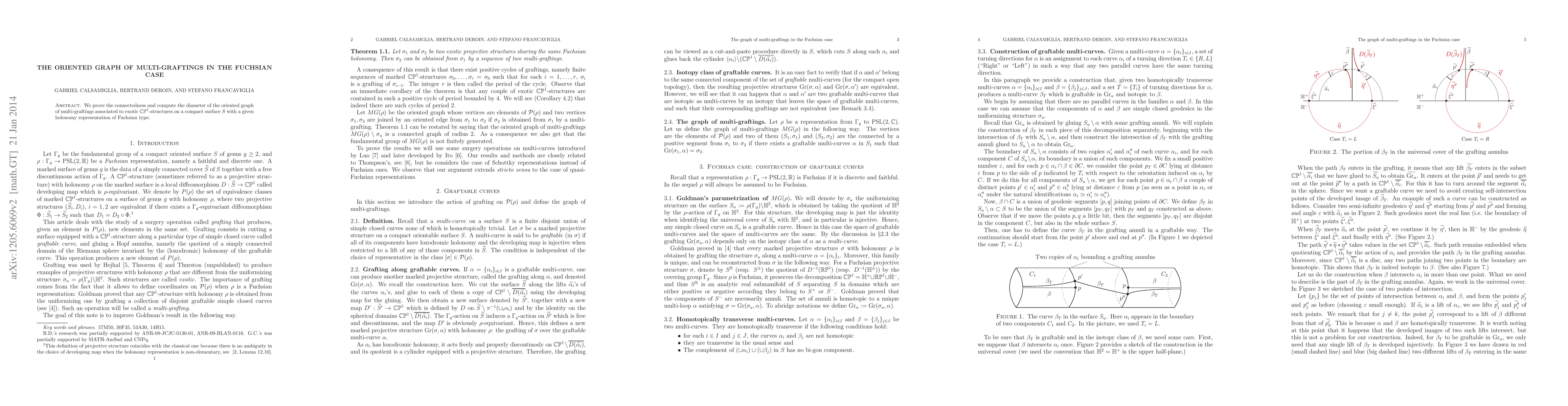 We prove the connectedness and calculate the diameter of the oriented graph of graftings associated to exotic complex projective structures on a compact surface S with a given holonomy representation of Fuchsian type. The oriented graph of graftings is the graph whose vertices are the equivalence classes of marked CP^1-structures on S with a given fixed holonomy, and there is an oriented edge between two structures if the second is obtained from the first by grafting.