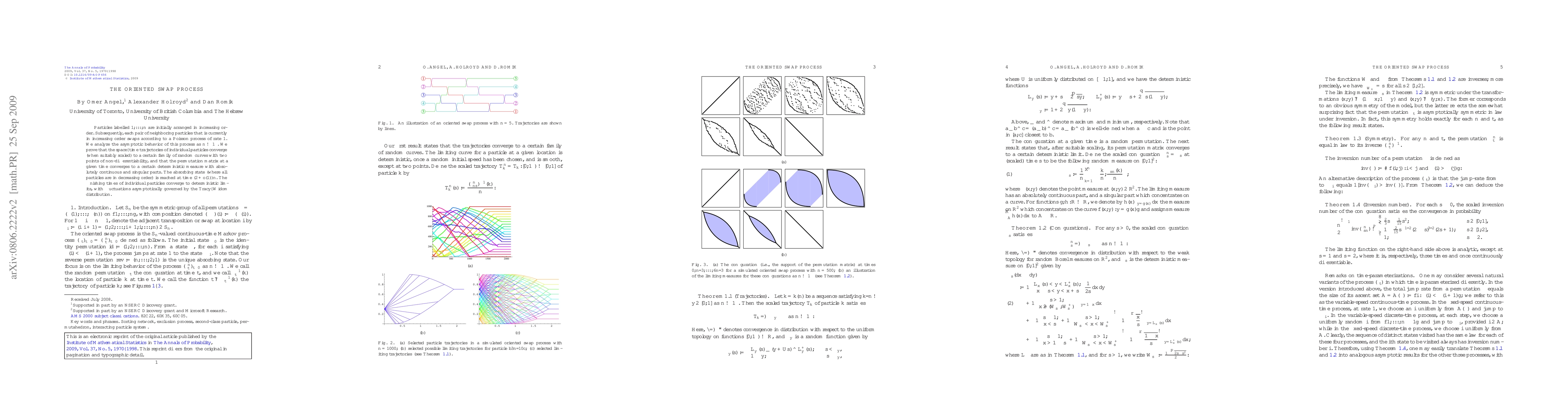 The oriented swap process, where neighboring particles in increasing order swap according to a Poisson process, converges to a family of random curves with two points of non-differentiability. The permutation matrix converges to a deterministic measure with continuous and singular parts, and the process reaches absorption in $(2+o(1))n$ time, with particle finishing times governed by the Tracy-Widom distribution.