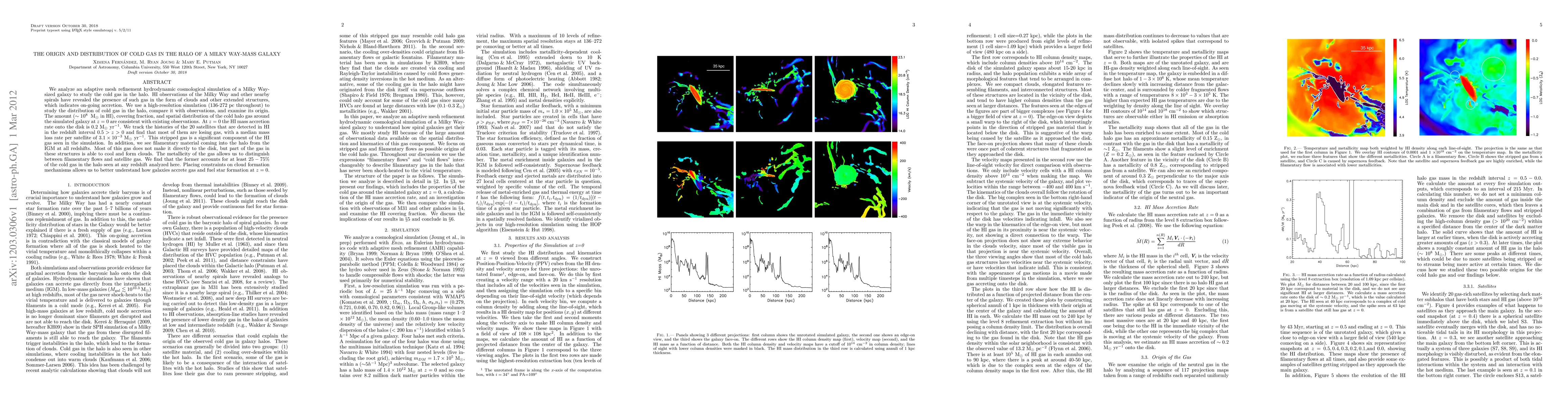 This paper uses a high-resolution cosmological simulation to study the cold gas in the halo of a Milky Way-sized galaxy, finding that stripped gas from satellites and material from the intergalactic medium contribute significantly to the halo's HI gas. The simulation's results match observations, indicating ongoing accretion and fueling star formation.