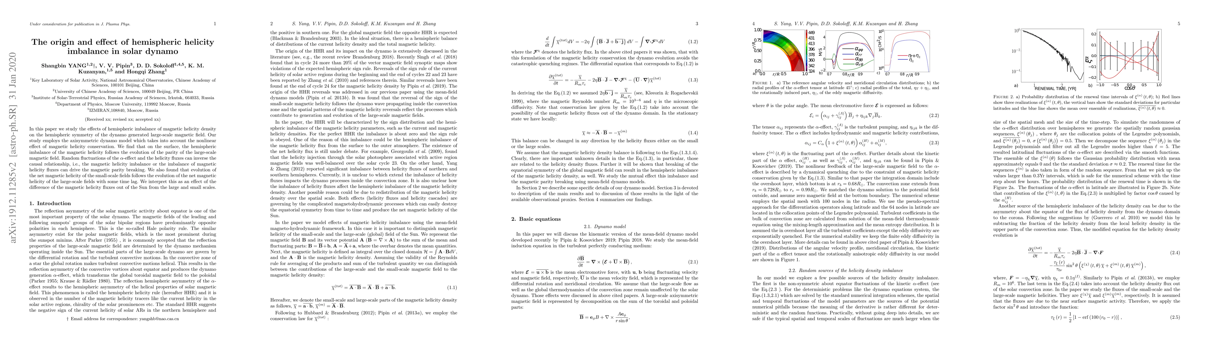 In this paper we study the effects of hemispheric imbalance of magnetic helicity density on breaking the equatorial reflection symmetry of the dynamo generated large-scale magnetic field. Our study employs the axisymmetric dynamo model which takes into account the nonlinear effect of magnetic helicity conservation. We find that the evolution of the net magnetic helicity density, in other words, the magnetic helicity imbalance, on the surface follows the evolution of the parity of the large-scale magnetic field. Random fluctuations of the $\alpha$-effect and the helicity fluxes can inverse the causal relationship, i.e., the magnetic helicity imbalance or the imbalance of magnetic helicity fluxes can drive the magnetic parity breaking. We also found that evolution of the net magnetic helicity of the small-scale fields follows the evolution of the net magnetic helicity of the large-scale fields with some time lag. We interpret this as an effect of the difference of the magnetic helicity fluxes out of the Sun from the large and small scales.