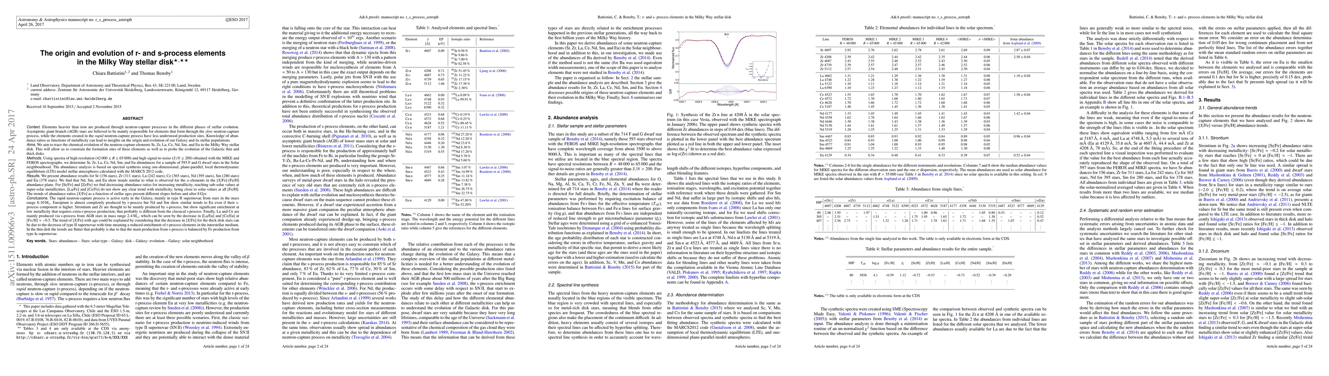 This paper investigates the chemical evolution of neutron-capture elements in the Milky Way's stellar disk, finding that r-process elements like Eu are primarily produced early in the Galaxy, while s-process elements like La and Ce are mainly produced by AGB stars. The study reveals distinct trends in the abundance ratios of these elements with metallicity, suggesting different formation sites and evolutionary histories for the Galactic thin and thick disks.