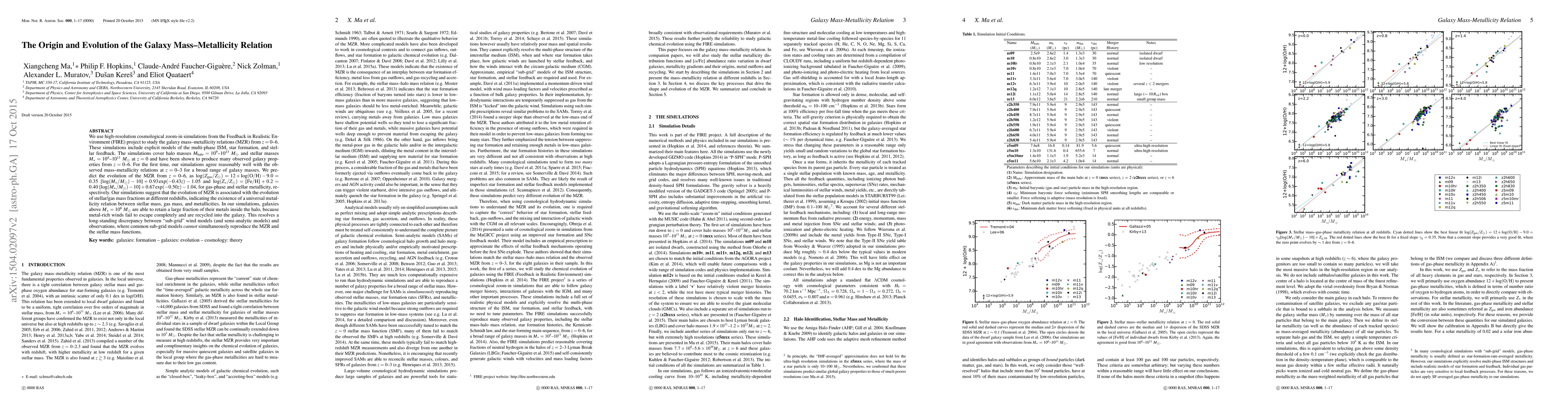 This paper uses high-resolution simulations from the FIRE project to study the galaxy mass-metallicity relation (MZR) from z=0-6, finding agreement with observed MZR for a broad range of galaxy masses. The simulations predict the evolution of MZR and suggest that metallicity is linked to the evolution of stellar/gas mass fractions, resolving discrepancies in sub-grid wind models.