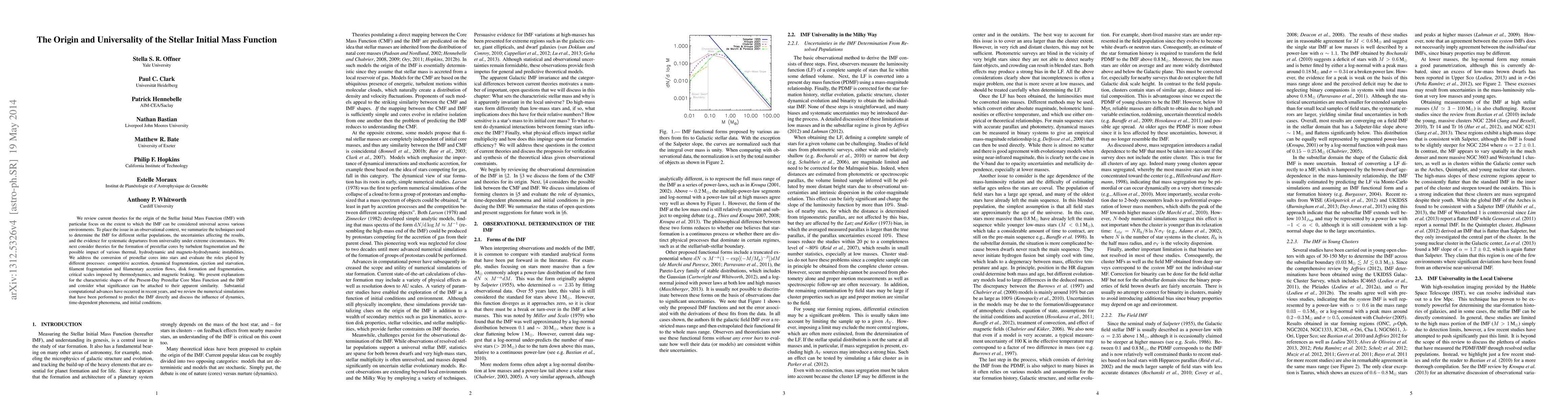 This paper reviews theories on the Stellar Initial Mass Function (IMF) and its universality across different environments, summarizing observational techniques and uncertainties, and evaluating various physical processes influencing stellar formation. It also discusses recent numerical simulations and their implications for understanding the IMF's characteristic shapes.