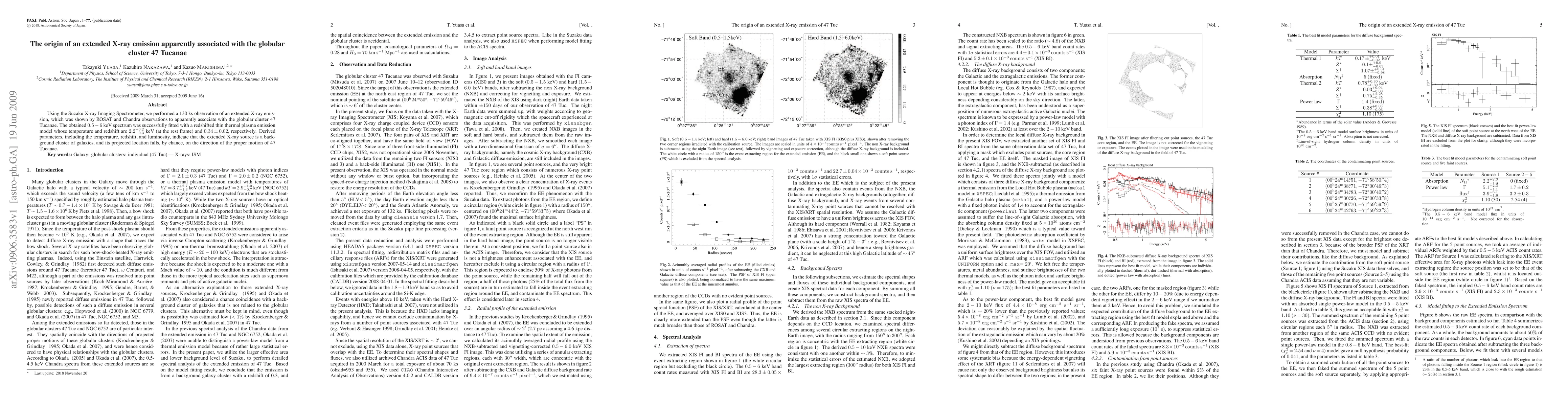 This study, using the Suzaku X-ray Imaging Spectrometer, analyzed extended X-ray emission associated with the globular cluster 47 Tucanae, finding a redshifted thin thermal plasma emission model. The emission is attributed to a background galaxy cluster, not related to 47 Tucanae.