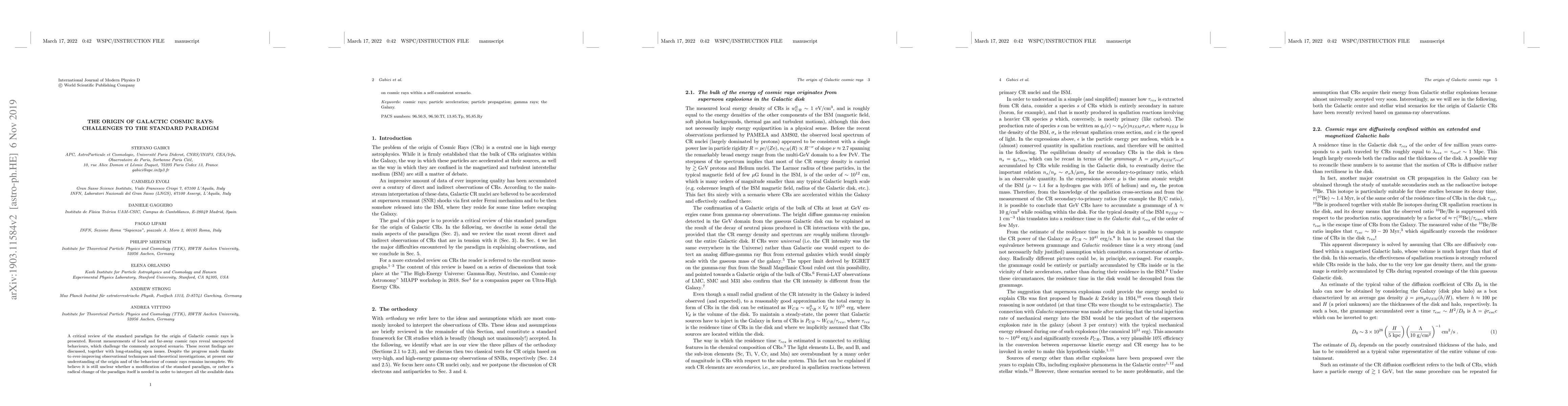 This paper critically examines the standard paradigm for Galactic cosmic rays, highlighting unexpected behaviors revealed by recent measurements that challenge the accepted scenario. Despite advancements in observational and theoretical research, the origin and behavior of cosmic rays remain incomplete, prompting a debate on the need for a paradigm shift.