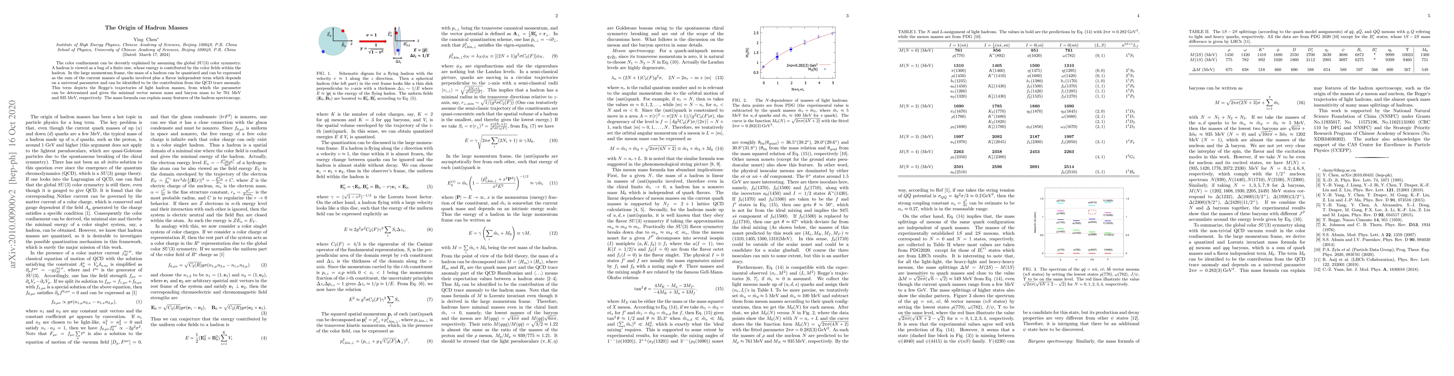 The color confinement can be decently explained by assuming the global $SU(3)$ color symmetry. A hadron is viewed as a bag of a finite size, whose energy is contributed by the color fields within the hadron. In the large momentum frame, the mass of a hadron can be quantized and can be expressed as the sum of the current masses of quarks involved plus a flavor independent term which depends on a universal parameter and can be identified to be the contribution from the QCD trace anomaly. This term depicts the Regge's trajectories of light hadron masses, from which the parameter can be determined and gives the minimal vector meson mass and baryon mass to be 761 MeV and 935 MeV, respectively. The mass formula can explain many features of the hadron spectroscopy.