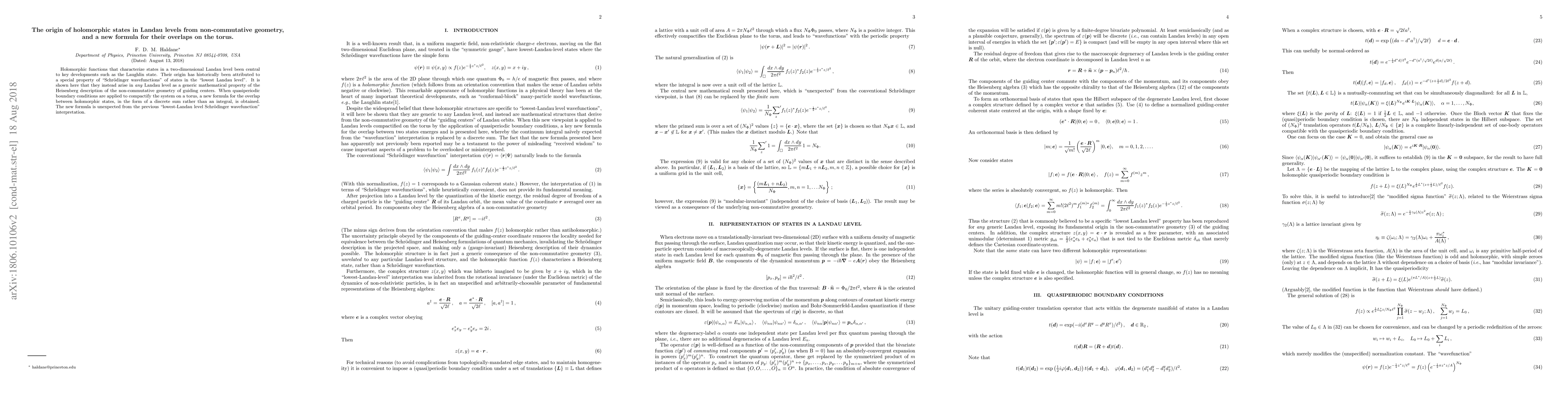 Holomorphic functions that characterize states in a two-dimensional Landau level been central to key developments such as the Laughlin state. Their origin has historically been attributed to a special property of "Schr\"odinger wavefunctions" of states in the "lowest Landau level". It is shown here that they instead arise in any Landau level as a generic mathematical property of the Heisenberg description of the non-commutative geometry of guiding centers. When quasiperiodic boundary conditions are applied to compactify the system on a torus, a new formula for the overlap between holomorphic states, in the form of a discrete sum rather than an integral, is obtained. The new formula is unexpected from the previous "lowest-Landau level Schr\"odinger wavefunction" interpretation.