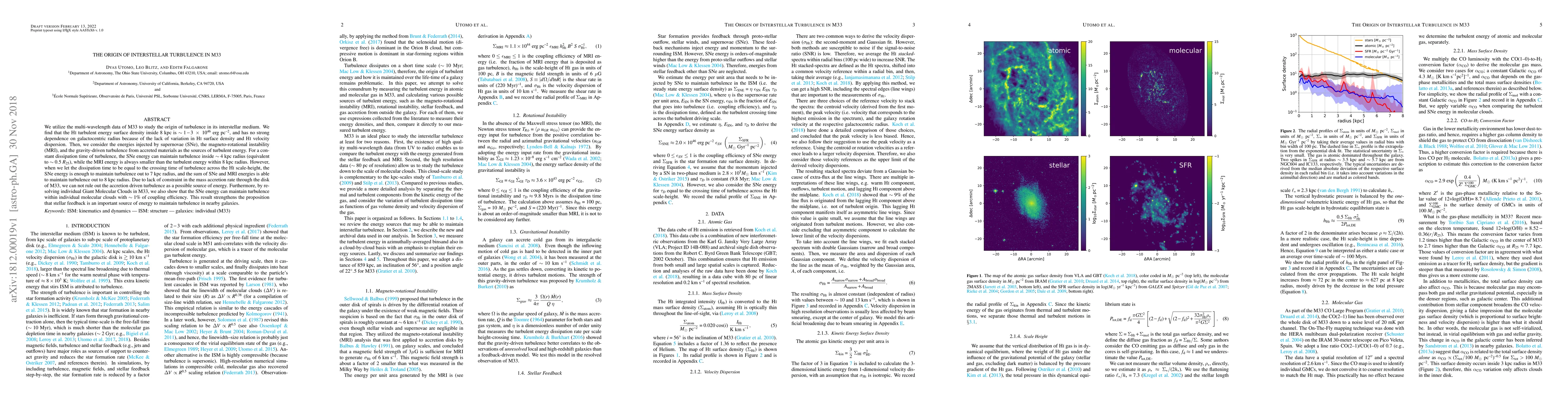 We utilize the multi-wavelength data of M33 to study the origin of turbulence in its interstellar medium. We find that the HI turbulent energy surface density inside 8 kpc is $\sim1-3~\times~10^{46}$ erg pc$^{-2}$, and has no strong dependence on galactocentric radius because of the lack of variation in HI surface density and HI velocity dispersion. Then, we consider the energies injected by supernovae (SNe), the magneto-rotational instability (MRI), and the gravity-driven turbulence from accreted materials as the sources of turbulent energy. For a constant dissipation time of turbulence, the SNe energy can maintain turbulence inside $\sim 4$ kpc radius (equivalent to $\sim 0.5~R_{25}$), while the MRI energy is always smaller than the turbulent energy within 8 kpc radius. However, when we let the dissipation time to be equal to the crossing time of turbulence across the HI scale-height, the SNe energy is enough to maintain turbulence out to 7 kpc radius, and the sum of SNe and MRI energies is able to maintain turbulence out to 8 kpc radius. Due to lack of constraint in the mass accretion rate through the disk of M33, we can not rule out the accretion driven turbulence as a possible source of energy. Furthermore, by resolving individual Giant Molecular Clouds in M33, we also show that the SNe energy can maintain turbulence within individual molecular clouds with $\sim 1\%$ of coupling efficiency. This result strengthens the proposition that stellar feedback is an important source of energy to maintain turbulence in nearby galaxies.