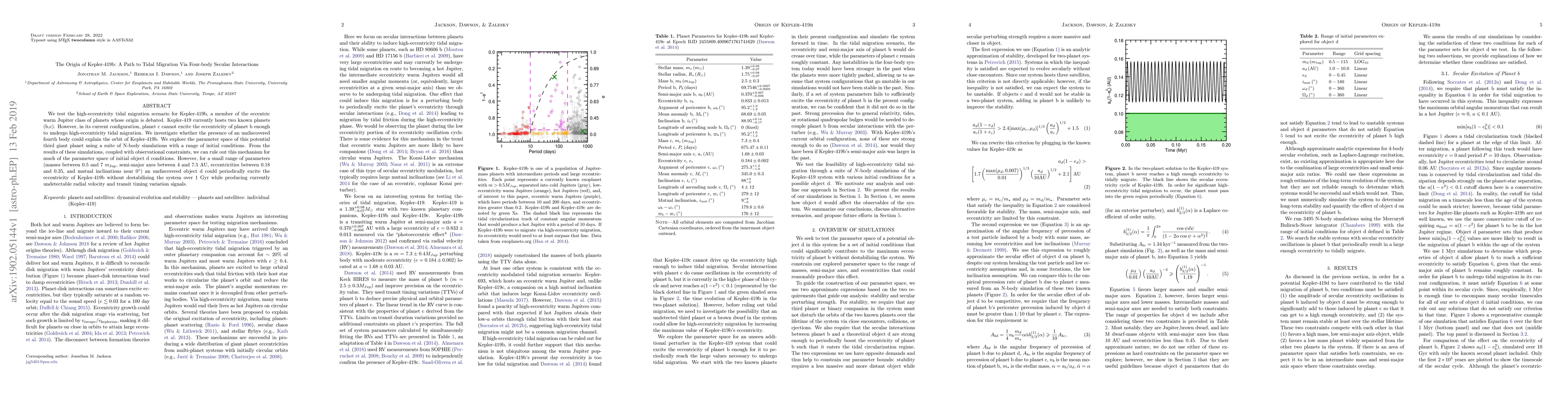 This paper explores the high-eccentricity tidal migration scenario for Kepler-419b, suggesting that an undiscovered fourth body might be necessary to explain its orbit. Simulations indicate that while such a body is unlikely in most scenarios, a specific range of parameters could allow it to periodically excite the eccentricity of Kepler-419b without destabilizing the system.