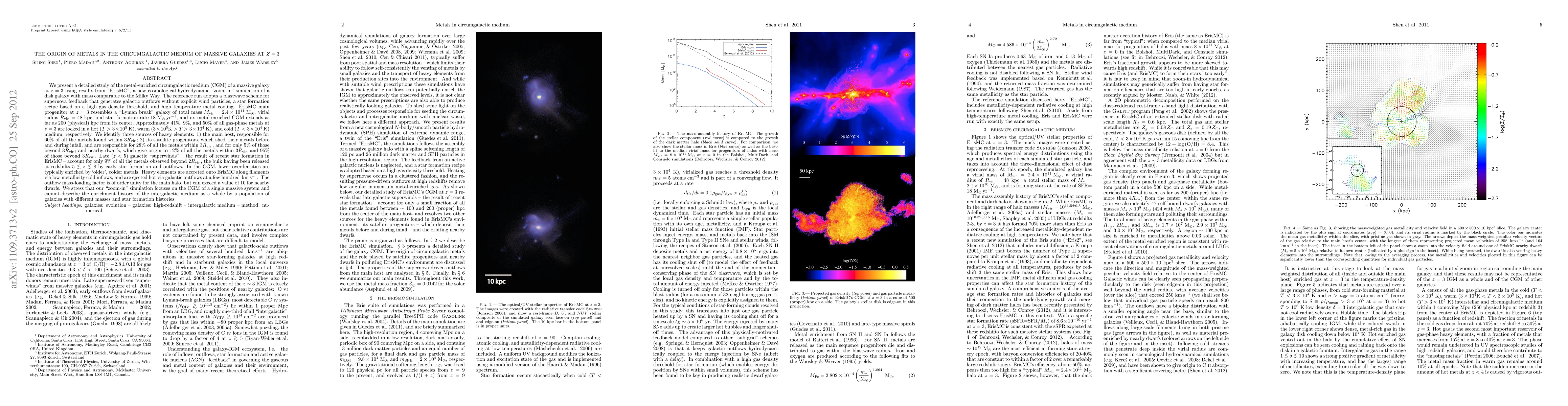A study of a massive galaxy at z=3 reveals that 41% of its metal-enriched circum-galactic medium comes from the main host, with satellite progenitors and nearby dwarfs contributing smaller amounts, while galactic outflows account for only 9% of metals beyond its virial radius.