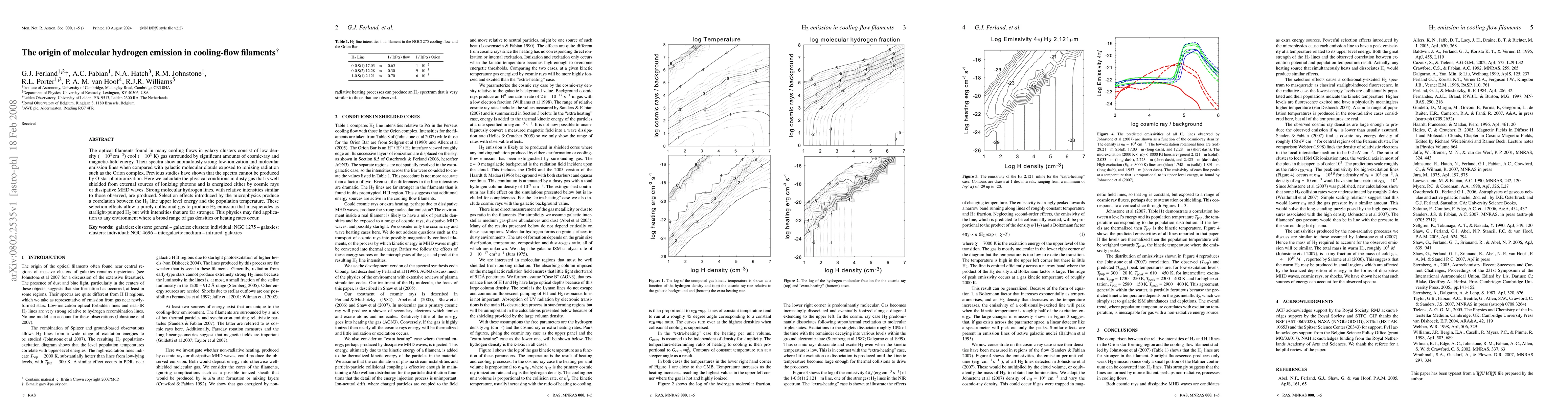 The optical filaments found in many cooling flows in galaxy clusters consist of low density ($\sim 10^3 \pcc$) cool ($\sim 10^3$ K) gas surrounded by significant amounts of cosmic-ray and magnetic-field energy. Their spectra show anomalously strong low-ionization and molecular emission lines when compared with galactic molecular clouds exposed to ionizing radiation such as the Orion complex. Previous studies have shown that the spectra cannot be produced by O-star photoionization. Here we calculate the physical conditions in dusty gas that is well shielded from external sources of ionizing photons and is energized either by cosmic rays or dissipative MHD waves. Strong molecular hydrogen lines, with relative intensities similar to those observed, are produced. Selection effects introduced by the microphysics produce a correlation between the \htwo line upper level energy and the population temperature. These selection effects allow a purely collisional gas to produce \htwo emission that masquerades as starlight-pumped \htwo but with intensities that are far stronger. This physics may find application to any environment where a broad range of gas densities or heating rates occur.