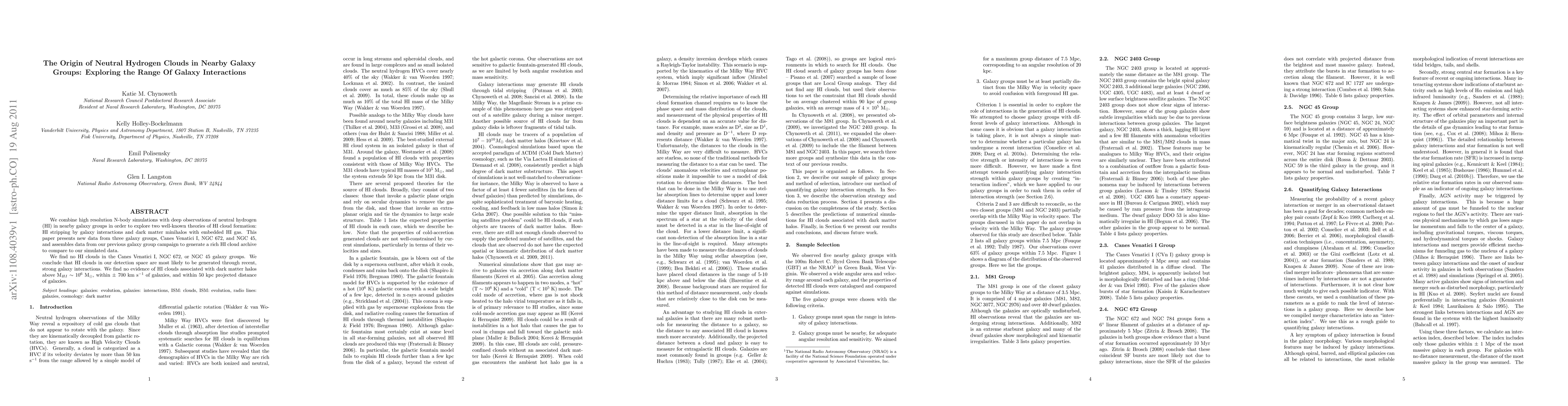 We combine high resolution N-body simulations with deep observations of neutral hydrogen (HI) in nearby galaxy groups in order to explore two well-known theories of HI cloud formation: HI stripping by galaxy interactions and dark matter minihalos with embedded HI gas. This paper presents new data from three galaxy groups, Canes Venatici I, NGC 672, and NGC 45, and assembles data from our previous galaxy group campaign to generate a rich HI cloud archive to compare to our simulated data. We find no HI clouds in the Canes Venatici I, NGC 672, or NGC 45 galaxy groups. We conclude that HI clouds in our detection space are most likely to be generated through recent, strong galaxy interactions. We find no evidence of HI clouds associated with dark matter halos above M_HI = 10^6 M_Sun, within +/- 700 km/s of galaxies, and within 50 kpc projected distance of galaxies.