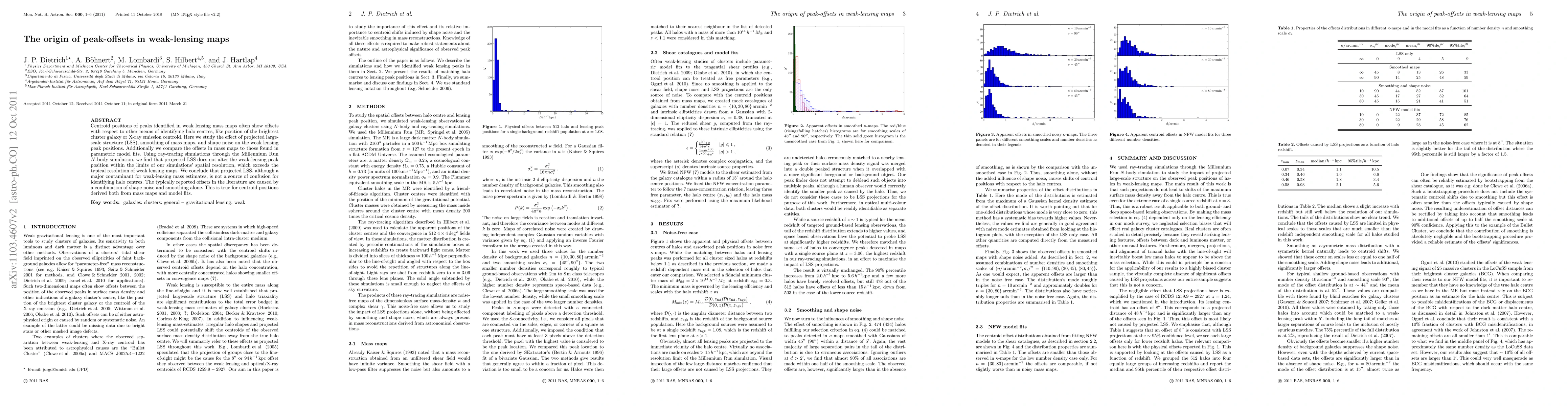 This study investigates the origins of peak-offsets in weak-lensing maps, revealing that projected large-scale structure does not affect peak positions. The reported offsets are primarily due to shape noise and smoothing, not large-scale structure.