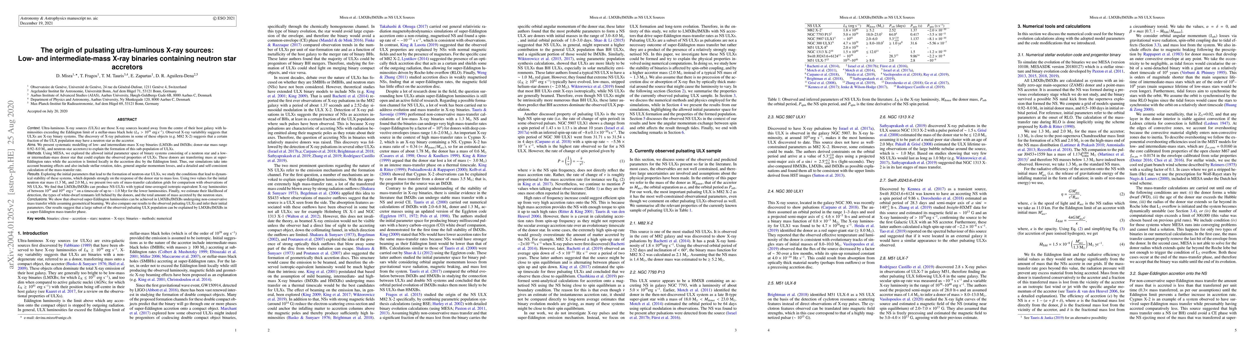 This paper explores the origin of pulsating ultra-luminous X-ray sources (ULXs) through systematic modelling of low- and intermediate-mass X-ray binaries containing neutron star accretors. The study finds that these systems can produce ULXs with observed luminosities and suggests that many pulsating ULXs may result from super-Eddington mass transfer in such binary systems.