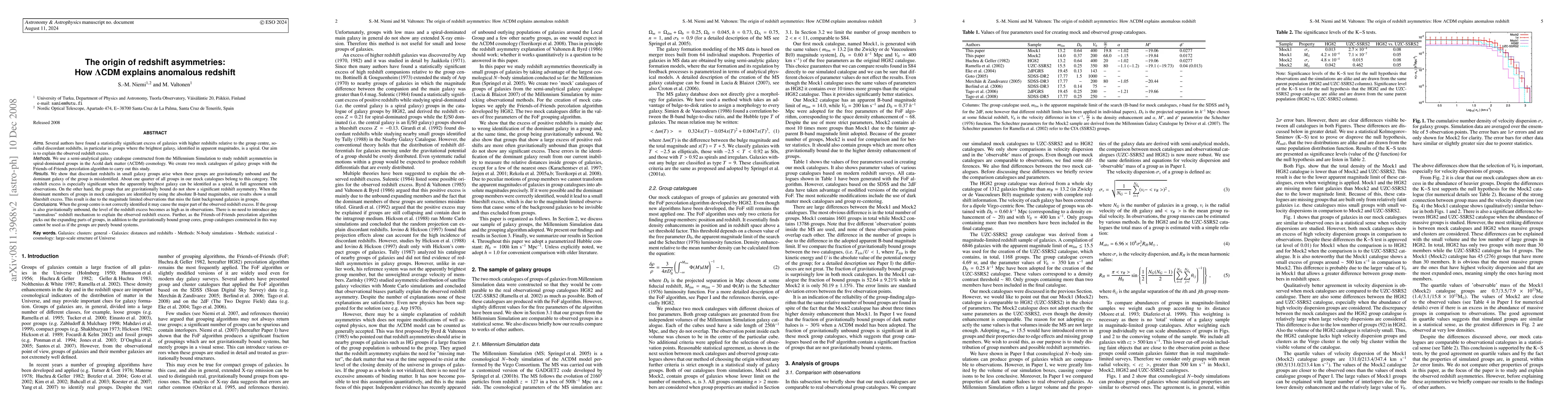 Several authors have found a statistically significant excess of galaxies with higher redshifts relative to the group centre, so-called discordant redshifts, in particular in groups where the brightest galaxy, identified in apparent magnitudes, is a spiral. Our aim is to explain the observed redshift excess. We use a semi-analytical galaxy catalogue constructed from the Millennium Simulation to study redshift asymmetries in spiral-dominated groups in the Lambda cold dark matter (LambdaCDM) cosmology. We show that discordant redshifts in small galaxy groups arise when these groups are gravitationally unbound and the dominant galaxy of the group is misidentified. The redshift excess is especially significant when the apparently brightest galaxy can be identified as a spiral, in full agreement with observations. On the other hand, the groups that are gravitationally bound do not show a significant redshift asymmetry. When the dominant members of groups in mock catalogues are identified by using the absolute B-band magnitudes, our results show a small blueshift excess. This result is due to the magnitude limited observations that miss the faint background galaxies in groups. When the group centre is not correctly identified it may cause the major part of the observed redshift excess. If the group is also gravitationally unbound, the level of the redshift excess becomes as high as in observations. There is no need to introduce any "anomalous" redshift mechanism to explain the observed redshift excess. Further, as the Friends-of-Friends percolation algorithm picks out the expanding parts of groups, in addition to the gravitationally bound group cores, group catalogues constructed in this way cannot be used as if the groups are purely bound systems.