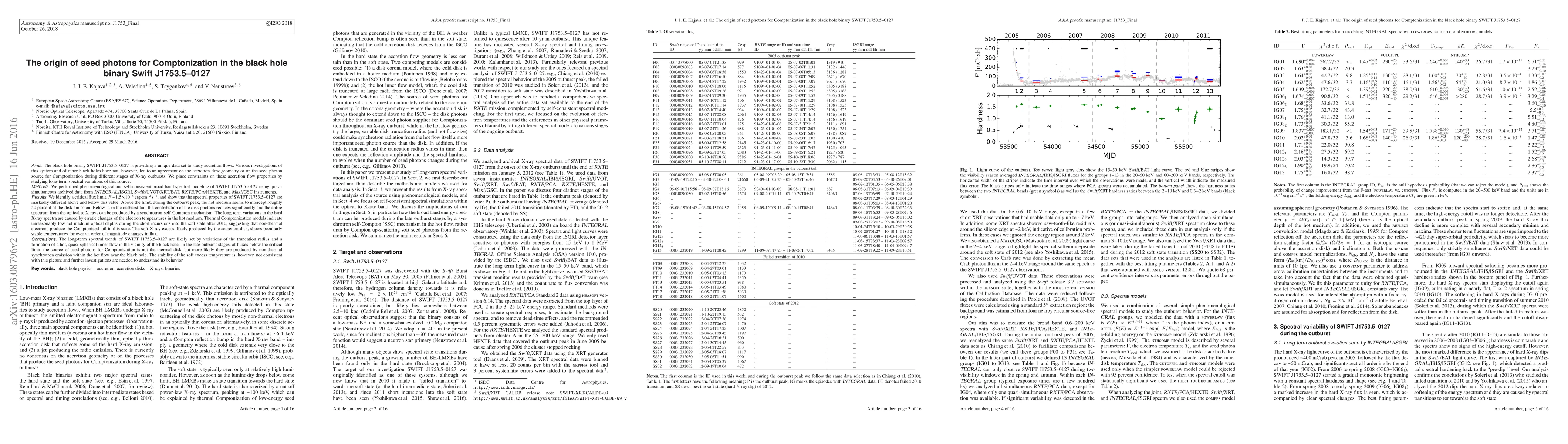 This paper investigates the spectral variations in the black hole binary SWIFT J1753.5-0127 to determine the origin of seed photons for Comptonization. The study finds that above a critical flux limit, the hot medium intercepts disk emission, while below it, the spectrum is dominated by synchrotron-self-Compton processes, suggesting different accretion flow geometries during different stages of X-ray outbursts.