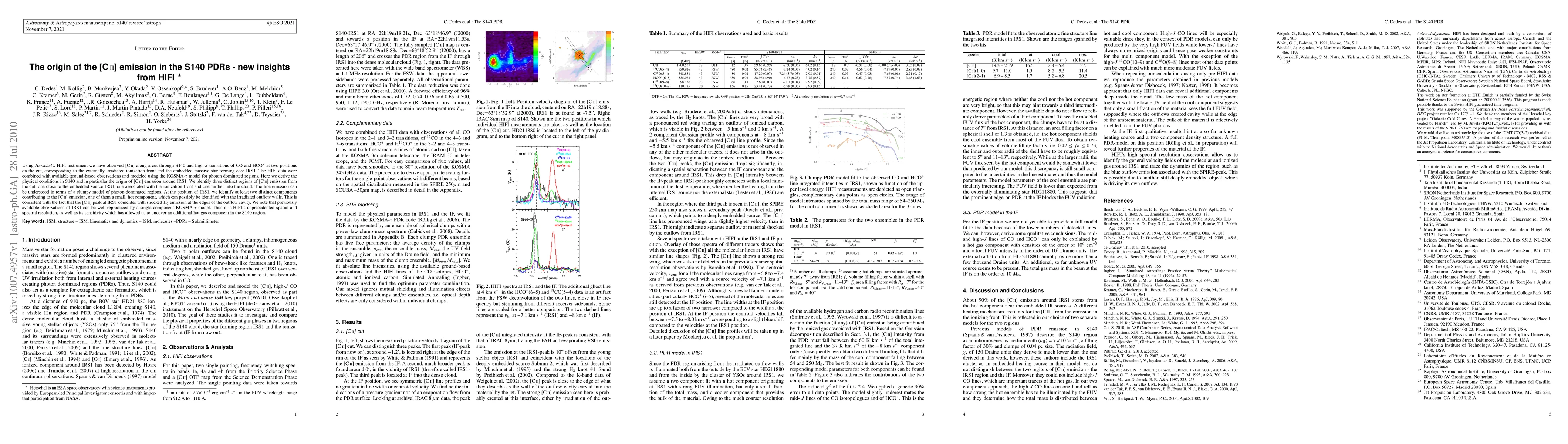 Using Herschel's HIFI instrument we have observed [C II] along a cut through S140 and high-J transitions of CO and HCO+ at two positions on the cut, corresponding to the externally irradiated ionization front and the embedded massive star forming core IRS1. The HIFI data were combined with available ground-based observations and modeled using the KOSMA-tau model for photon dominated regions. Here we derive the physical conditions in S140 and in particular the origin of [C II] emission around IRS1. We identify three distinct regions of [C II] emission from the cut, one close to the embedded source IRS1, one associated with the ionization front and one further into the cloud. The line emission can be understood in terms of a clumpy model of photon-dominated regions. At the position of IRS1, we identify at least two distinct components contributing to the [C II] emission, one of them a small, hot component, which can possibly be identified with the irradiated outflow walls. This is consistent with the fact that the [C II] peak at IRS1 coincides with shocked H2 emission at the edges of the outflow cavity. We note that previously available observations of IRS1 can be well reproduced by a single-component KOSMA-tau model. Thus it is HIFI's unprecedented spatial and spectral resolution, as well as its sensitivity which has allowed us to uncover an additional hot gas component in the S140 region.