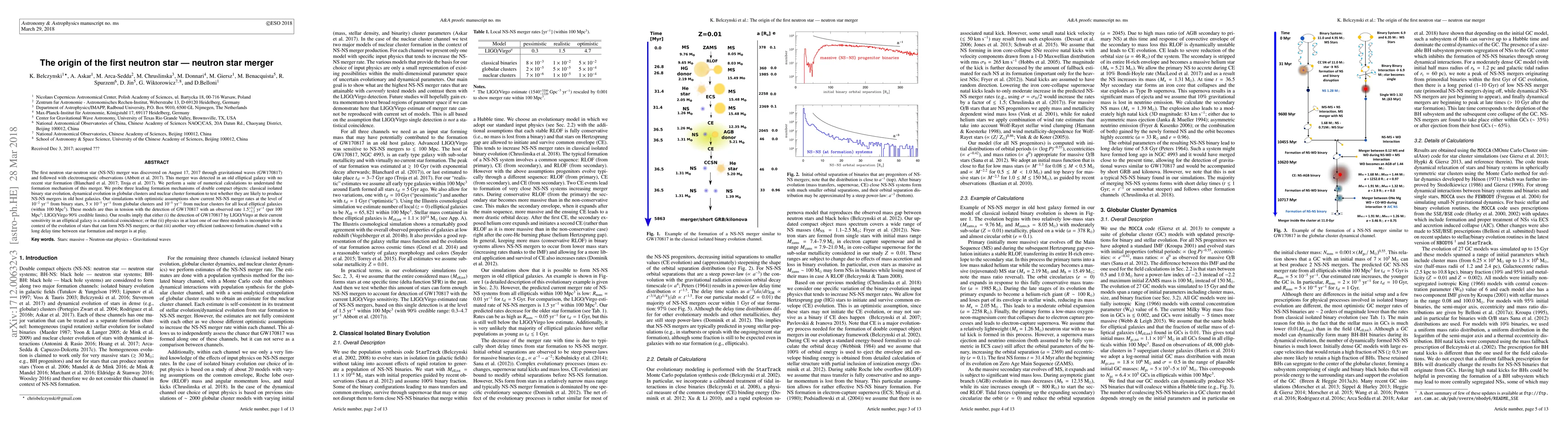 This paper investigates the origin of the first neutron star-neutron star merger detected in 2017, finding that current models for binary star evolution, globular cluster interactions, and nuclear cluster formation cannot account for the observed merger rate in old galaxies. The study suggests that either the detection is a coincidence, existing models are incomplete, or an unknown efficient formation channel exists.