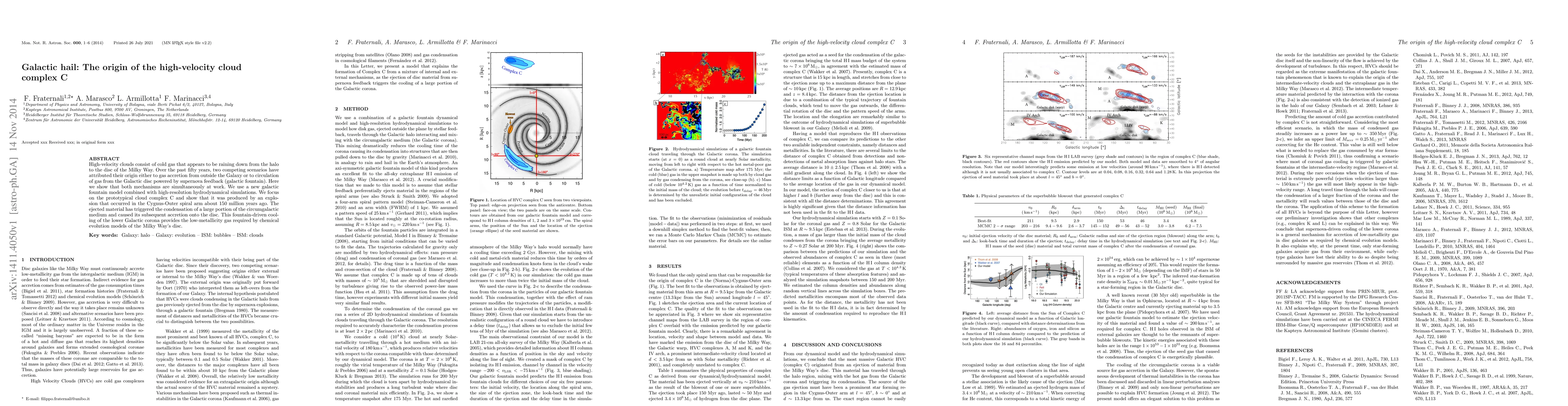 This research demonstrates that both gas accretion from outside the Galaxy and the galactic fountain mechanism contribute to the formation of high-velocity cloud complex C. The study reveals that a supernova explosion in the Cygnus-Outer spiral arm 150 million years ago triggered the cloud's formation, highlighting the role of galactic fountain-driven cooling in supplying low-metallicity gas to the Milky Way's disc.