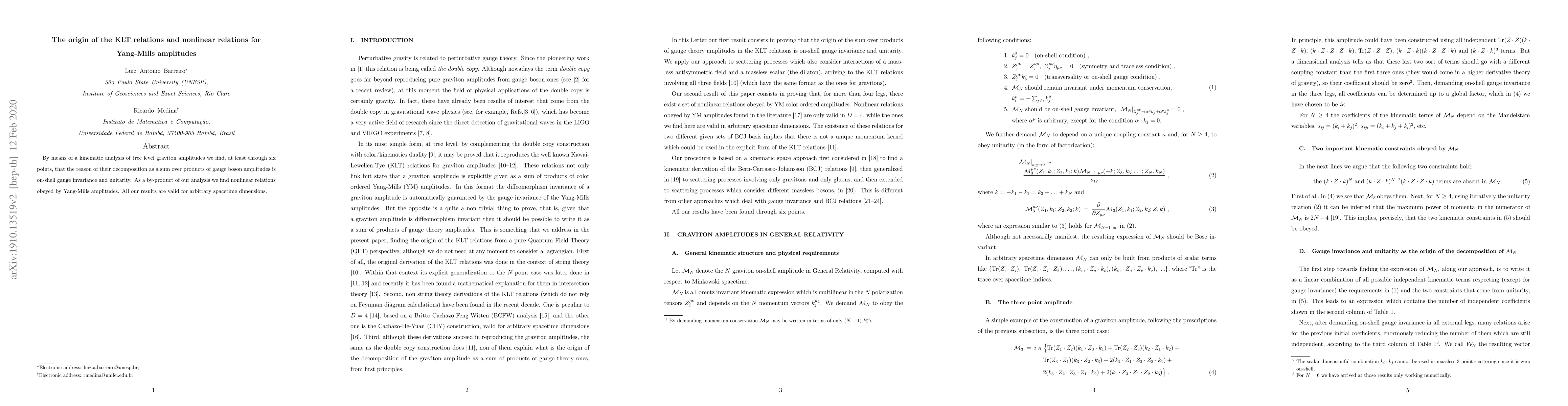This paper explores the origin of the KLT relations for Yang-Mills amplitudes through a kinematic analysis of tree-level graviton amplitudes, demonstrating their validity through six points and revealing nonlinear relations for these amplitudes. The findings are applicable in any spacetime dimension.