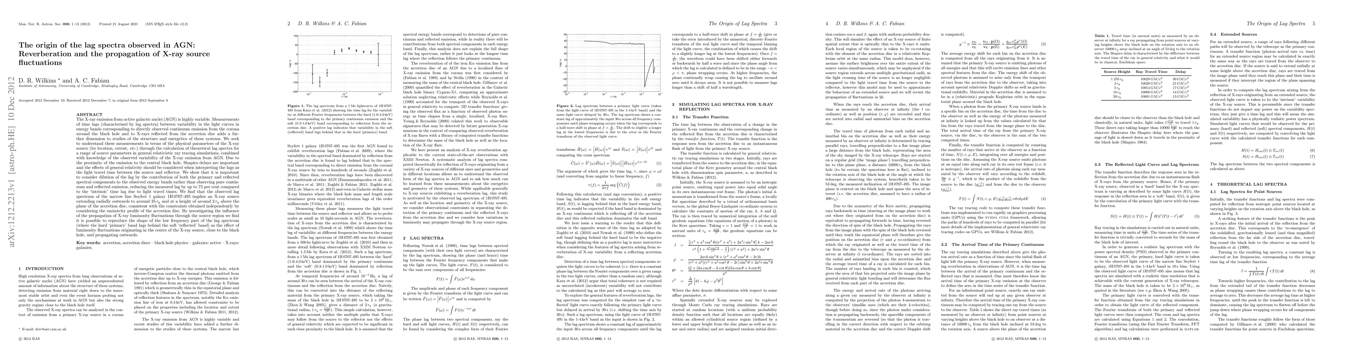 This paper investigates the lag spectra in AGN X-ray emissions, attributing observed time delays to reverberation and relativistic effects. It uses simulations to model lag spectra, finding that the lag spectrum of 1H 0707-495 suggests an X-ray source extending radially outward and above the accretion disc. The study concludes that the low-frequency lag spectrum can be explained by luminosity fluctuations originating near the black hole.