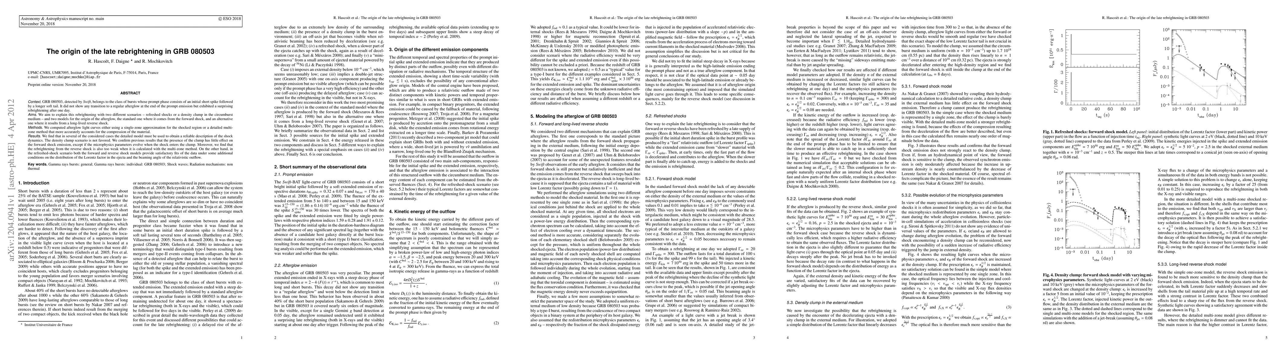 The paper presents a comprehensive analysis of GRB 080503's afterglow using advanced numerical methods, comparing single-zone and multizone models for shocked material description.