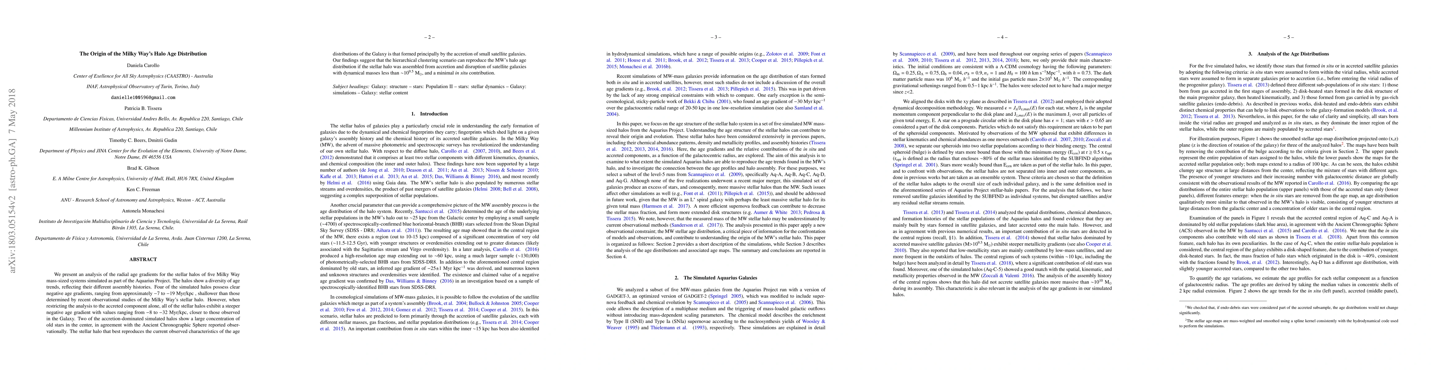 The research analyzes the age gradients in the stellar halos of five Milky Way-mass galaxies simulated as part of the Aquarius Project, distinguishing between in-situ and accreted stellar populations.