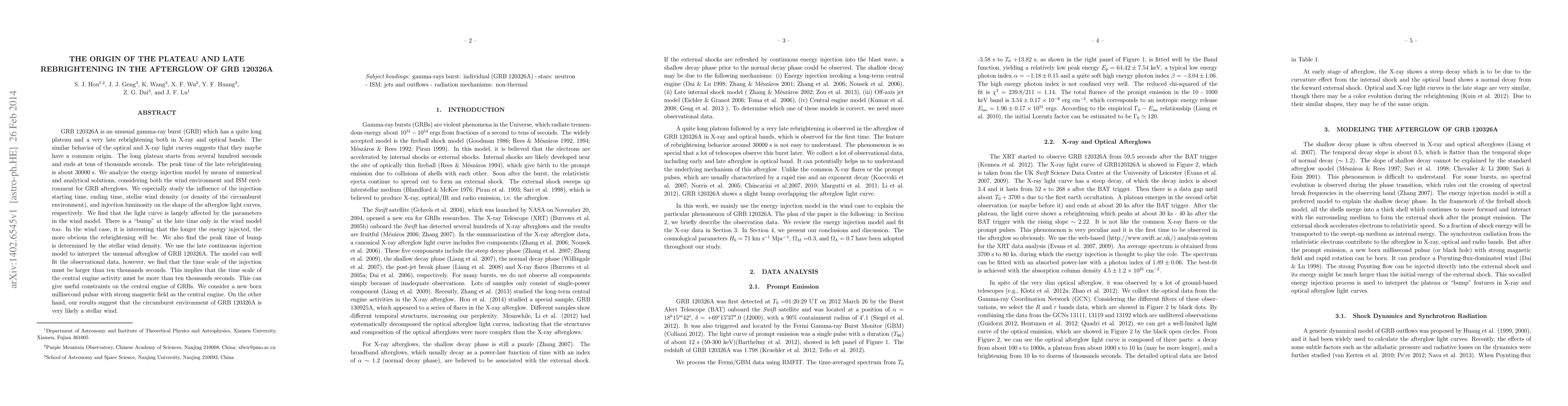 The paper presents a detailed analysis of the energy injection model for GRB 120326A, considering both wind and ISM environments, and provides a comprehensive study of the influence of various parameters on afterglow light curves.