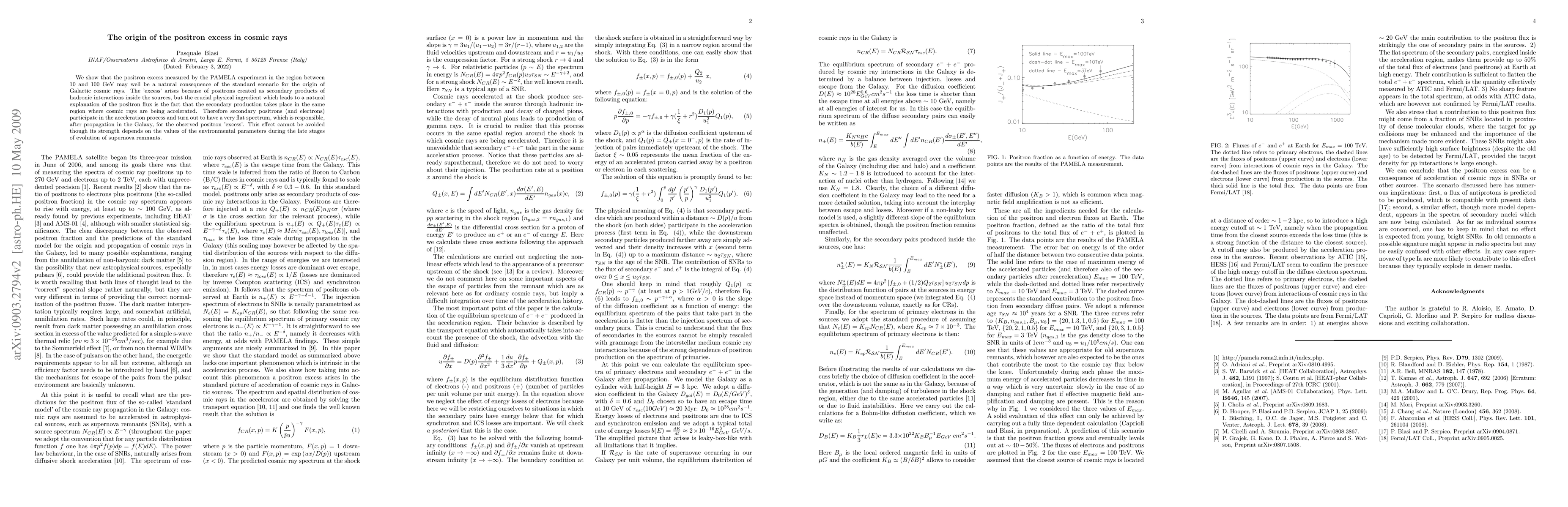 The PAMELA experiment's measured positron excess in the 10-100 GeV range is likely due to secondary positrons produced from hadronic interactions within cosmic ray sources. The flat spectrum of these secondary positrons, resulting from their participation in the acceleration process, explains the observed positron excess.