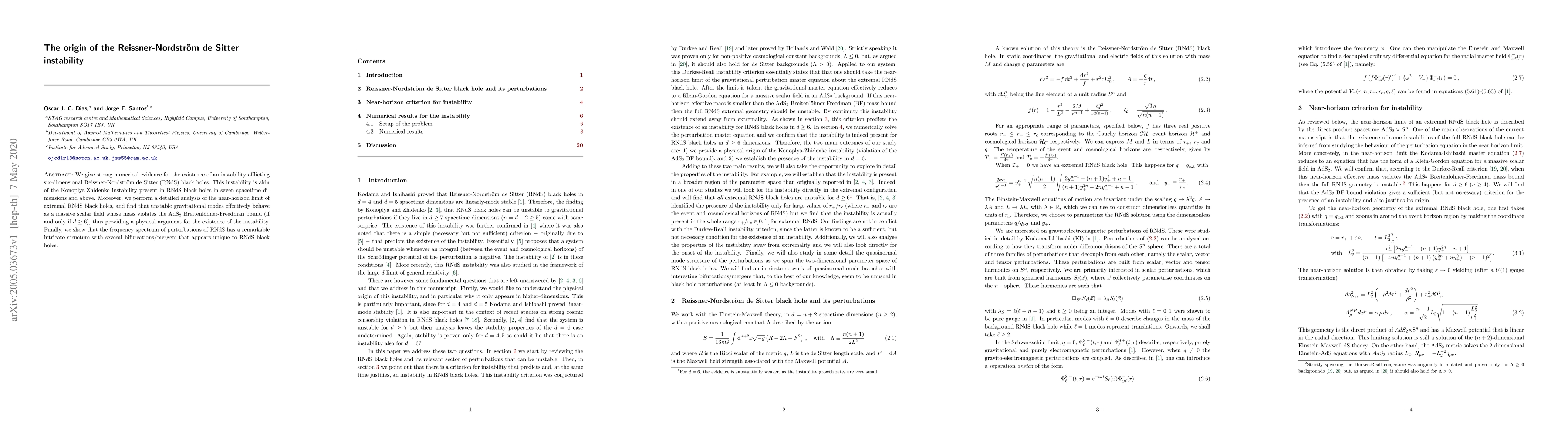 This paper provides strong numerical evidence for an instability in six-dimensional Reissner-Nordström de Sitter (RNdS) black holes, similar to the Konoplya-Zhidenko instability in higher dimensions. The study reveals that unstable modes behave as a massive scalar field violating the AdS$_2$ Breitenlöhner-Freedman bound in dimensions $d\geq 6$, thus justifying the instability's existence.
