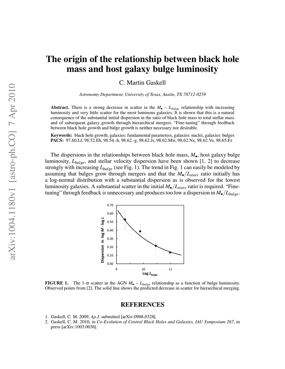 This paper demonstrates that the relationship between black hole mass and host galaxy bulge luminosity becomes less scattered at higher luminosities due to initial dispersion in black hole-to-stellar mass ratios and subsequent galaxy growth via mergers, without requiring "fine-tuning" through feedback mechanisms.
