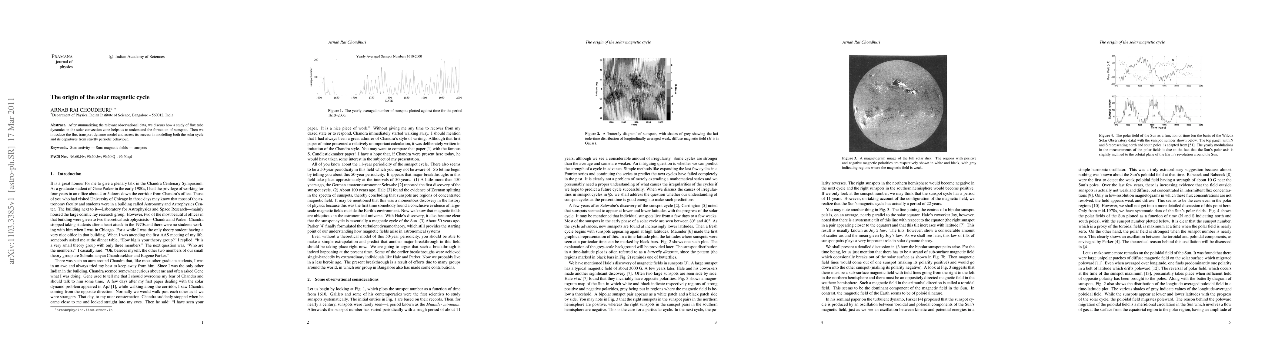 After summarizing the relevant observational data, we discuss how a study of flux tube dynamics in the solar convection zone helps us to understand the formation of sunspots. Then we introduce the flux transport dynamo model and assess its success in modelling both the solar cycle and its departures from strictly periodic behaviour.