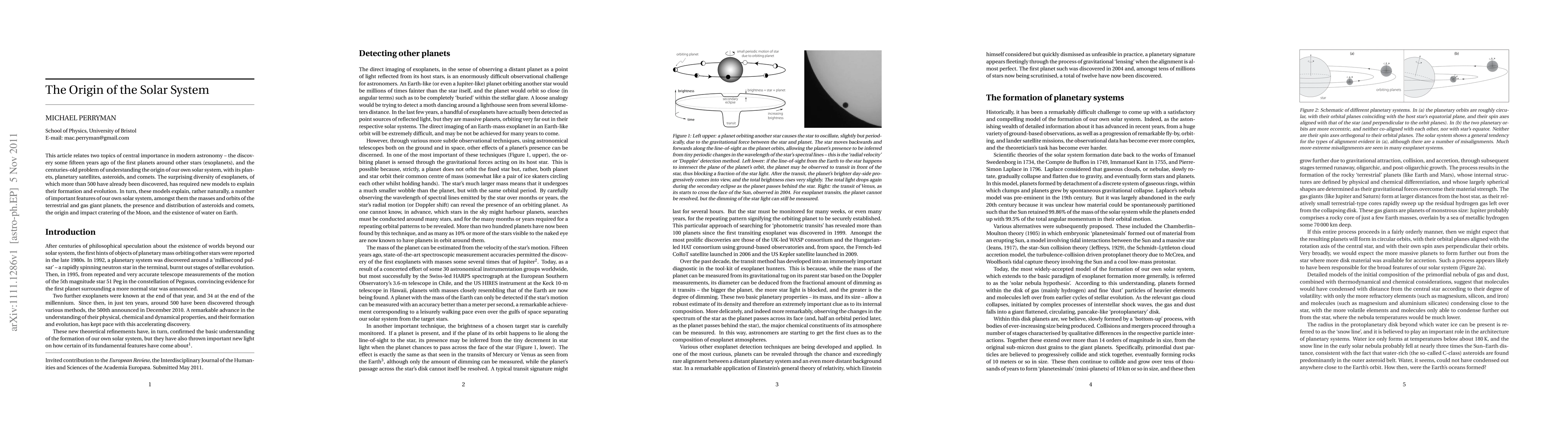 This article relates two topics of central importance in modern astronomy - the discovery some fifteen years ago of the first planets around other stars (exoplanets), and the centuries-old problem of understanding the origin of our own solar system, with its planets, planetary satellites, asteroids, and comets. The surprising diversity of exoplanets, of which more than 500 have already been discovered, has required new models to explain their formation and evolution. In turn, these models explain, rather naturally, a number of important features of our own solar system, amongst them the masses and orbits of the terrestrial and gas giant planets, the presence and distribution of asteroids and comets, the origin and impact cratering of the Moon, and the existence of water on Earth.