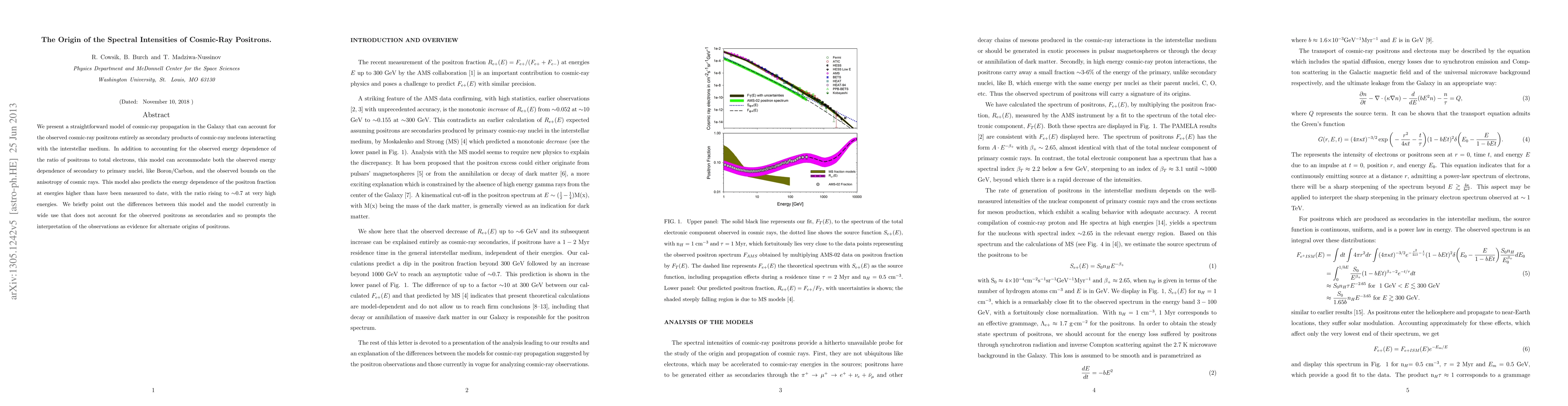 AMS instrument aboard the International Space Station is a high precision instrument capable of collecting large statistics on cosmic ray intensities and as such has started making highly significant contributions to Astroparticle Physics. In order to fully benefit from these observations, the positron fraction in cosmic rays in their recent publication and other results that will follow, the models to interpret the results have to be equally good. We enlarge on this remark by citing examples from the currently popular model and one of our own fitting the observed spectra of positrons, extending it to higher energies. We also show what one might expect to observe from a mono-energetic source, such as the annihilation of dark matter.