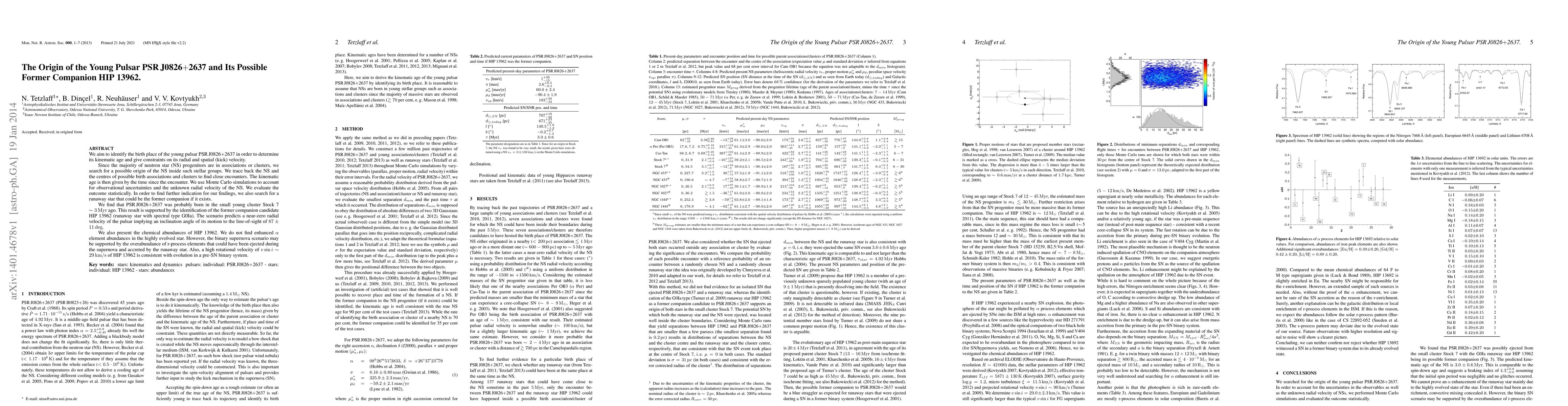 The young pulsar PSR J0826+2637 was found to have likely originated in a small cluster 3 million years ago, with its former companion star HIP 13962 identified as a potential runaway candidate.