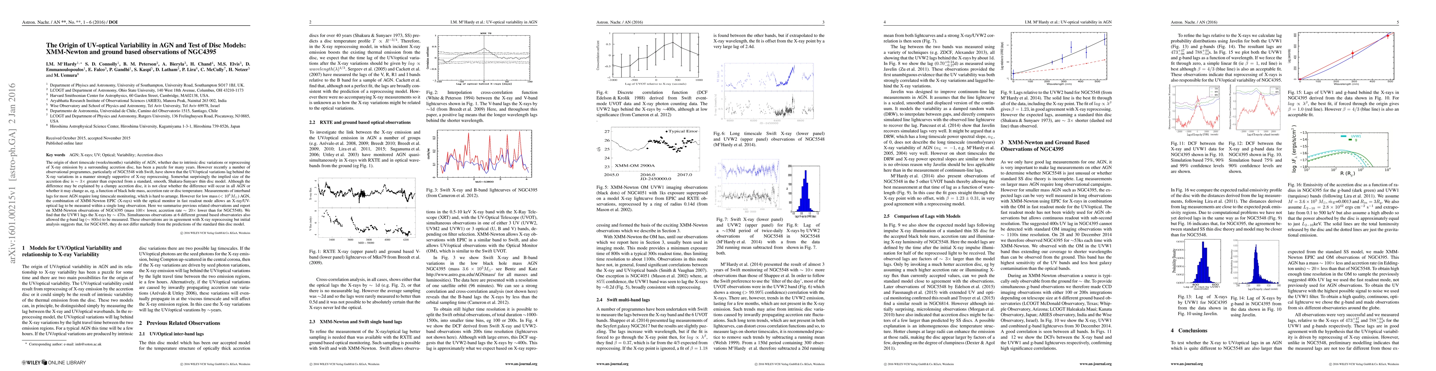 The origin of short timescale (weeks/months) variability of AGN, whether due to intrinsic disc variations or reprocessing of X-ray emission by a surrounding accretion disc, has been a puzzle for many years. However recently a number of observational programmes, particularly of NGC5548 with Swift, have shown that the UV/optical variations lag behind the X-ray variations in a manner strongly supportive of X-ray reprocessing. Somewhat surprisingly the implied size of the accretion disc is ~3x greater than expected from a standard, smooth, Shakura-Sunyaev thin disc model. Although the difference may be explained by a clumpy accretion disc, it is not clear whether the difference will occur in all AGN or whether it may change as, eg, a function of black hole mass, accretion rate or disc temperature. Measurements of interband lags for most AGN require long timescale monitoring, which is hard to arrange. However for low mass (<1 million solar mass) AGN, the combination of XMM-Newton EPIC (X-rays) with the optical monitor in fast readout mode allows an X-ray/UV-optical lag to be measured within a single long observation. Here we summarise previous related observations and report on XMM-Newton observations of NGC4395 (mass ~100x lower and accretion rate ~20x lower than for NGC5548). We find that the UVW1 lags the X-rays by ~470s. Simultaneous observations at 6 different ground based observatories also allowed the g-band lag (~800s) to be measured. These observations are in agreement with X-ray reprocessing but initial analysis suggests that, for NGC4395, they do not differ markedly from the predictions of the standard thin disc model.