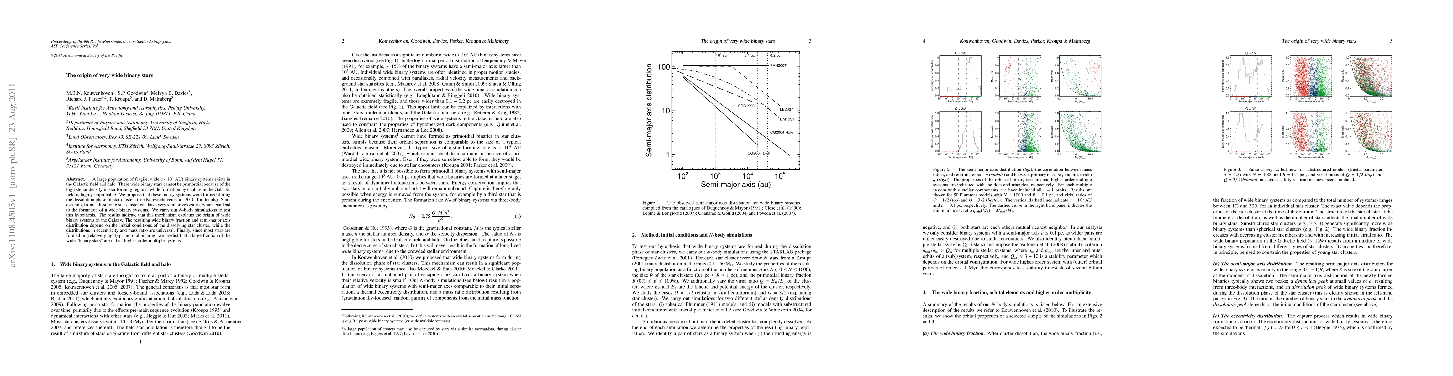 This paper proposes that very wide binary stars (> 1000 AU) originate from the dissolution phase of star clusters, where stars with similar velocities form binaries. N-body simulations support this hypothesis, showing that the resulting binary fraction and semi-major axis distribution depend on initial cluster conditions, while eccentricity and mass ratio distributions are universal.