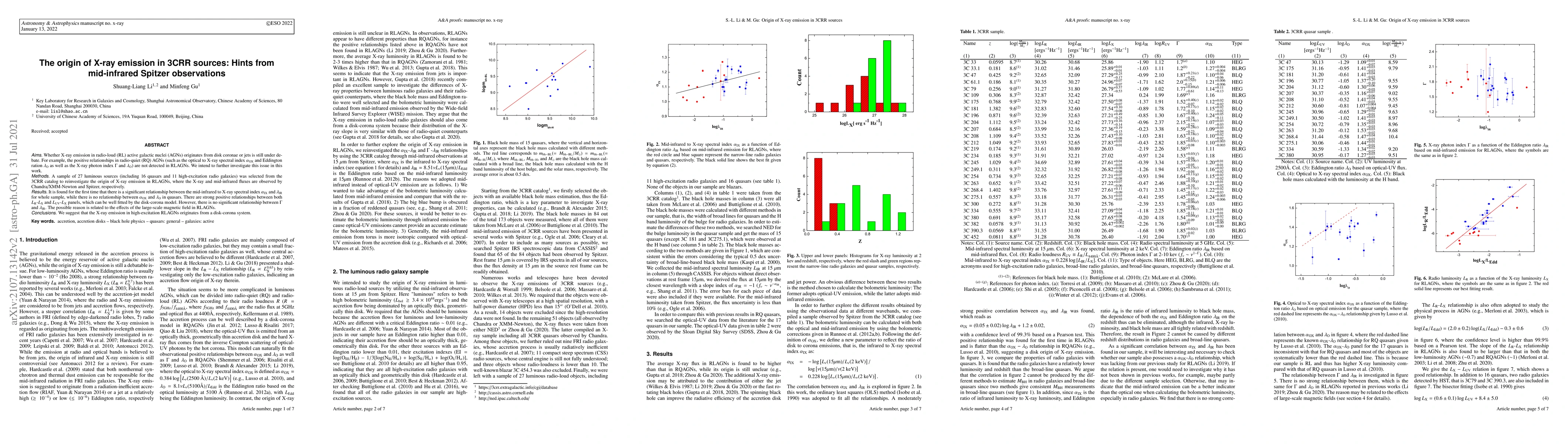 This paper investigates the origin of X-ray emission in radio-loud active galactic nuclei (AGNs) using Spitzer mid-infrared observations. It finds a significant correlation between mid-infrared and X-ray spectral indices, suggesting that X-ray emission in high-excitation radio-loud AGNs likely originates from a disk-corona system.