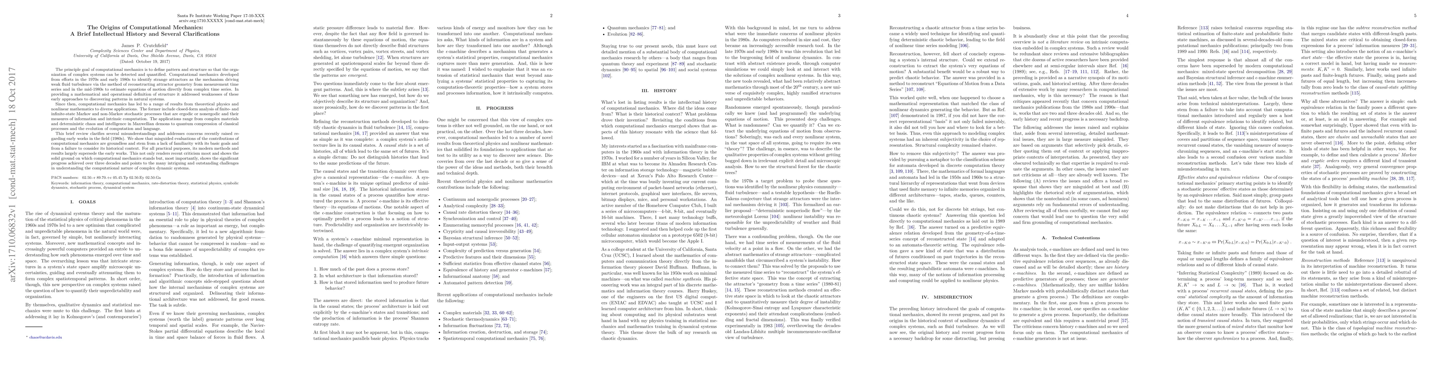 The principle goal of computational mechanics is to define pattern and structure so that the organization of complex systems can be detected and quantified. Computational mechanics developed from efforts in the 1970s and early 1980s to identify strange attractors as the mechanism driving weak fluid turbulence via the method of reconstructing attractor geometry from measurement time series and in the mid-1980s to estimate equations of motion directly from complex time series. In providing a mathematical and operational definition of structure it addressed weaknesses of these early approaches to discovering patterns in natural systems. Since then, computational mechanics has led to a range of results from theoretical physics and nonlinear mathematics to diverse applications---from closed-form analysis of Markov and non-Markov stochastic processes that are ergodic or nonergodic and their measures of information and intrinsic computation to complex materials and deterministic chaos and intelligence in Maxwellian demons to quantum compression of classical processes and the evolution of computation and language. This brief review clarifies several misunderstandings and addresses concerns recently raised regarding early works in the field (1980s). We show that misguided evaluations of the contributions of computational mechanics are groundless and stem from a lack of familiarity with its basic goals and from a failure to consider its historical context. For all practical purposes, its modern methods and results largely supersede the early works. This not only renders recent criticism moot and shows the solid ground on which computational mechanics stands but, most importantly, shows the significant progress achieved over three decades and points to the many intriguing and outstanding challenges in understanding the computational nature of complex dynamic systems.