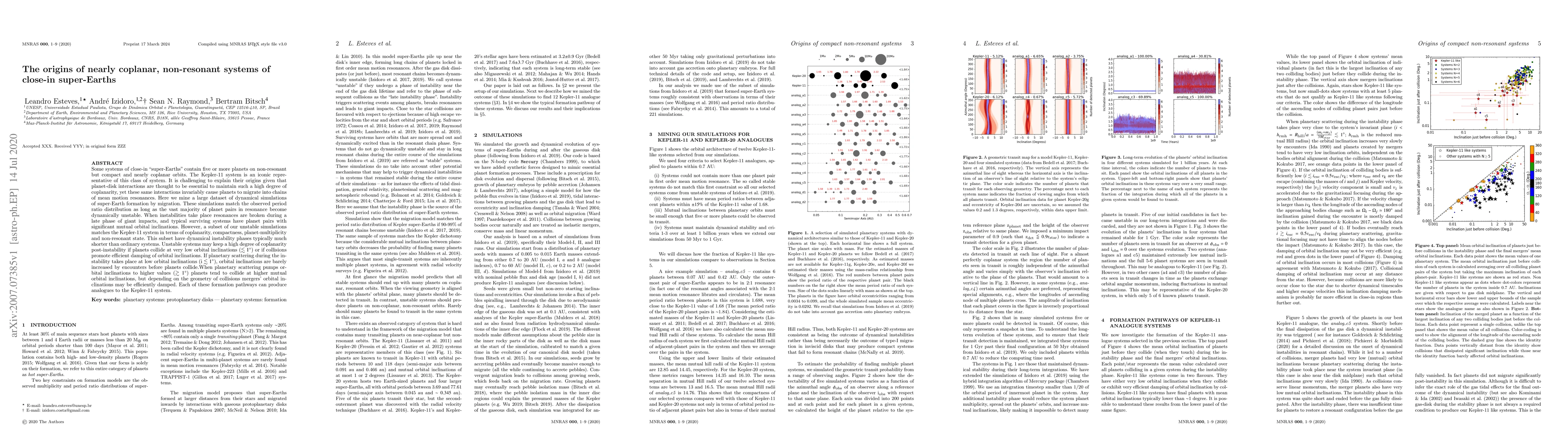 This paper explores the origins of nearly coplanar, non-resonant systems of close-in super-Earths, like the Kepler-11 system, through extensive dynamical simulations. It finds that a subset of unstable systems with short-lived instability phases can maintain high coplanarity if collisions occur at low orbital inclinations or if collisions efficiently damp inclinations, offering pathways to form such systems.