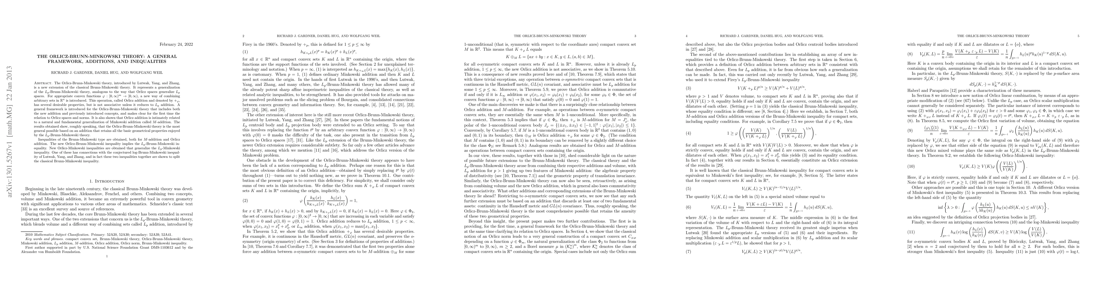 The Orlicz-Brunn-Minkowski theory extends classical Brunn-Minkowski theory by generalizing $L_p$ spaces through Orlicz spaces, introducing Orlicz addition $+_{\varphi}$ for combining sets. It establishes a framework relating to $M$-addition and proves new Brunn-Minkowski type inequalities, including a significant link to the log-Brunn-Minkowski conjecture.