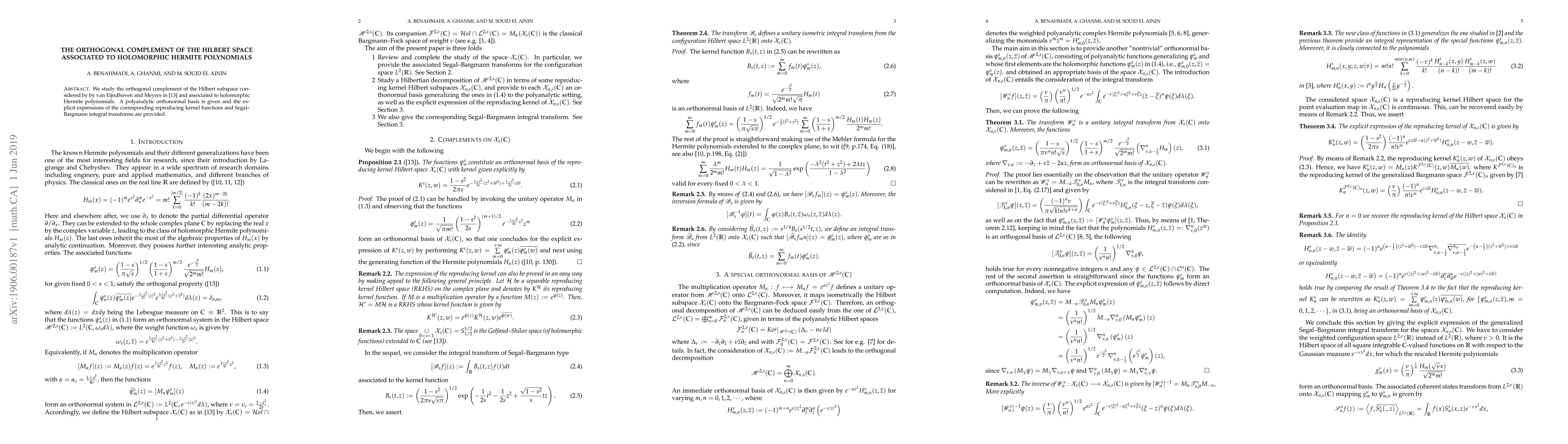 This paper investigates the orthogonal complement of a Hilbert space linked to holomorphic Hermite polynomials, providing a polyanalytic orthonormal basis and explicit expressions for the reproducing kernel functions and Segal-Bargmann integral transforms.