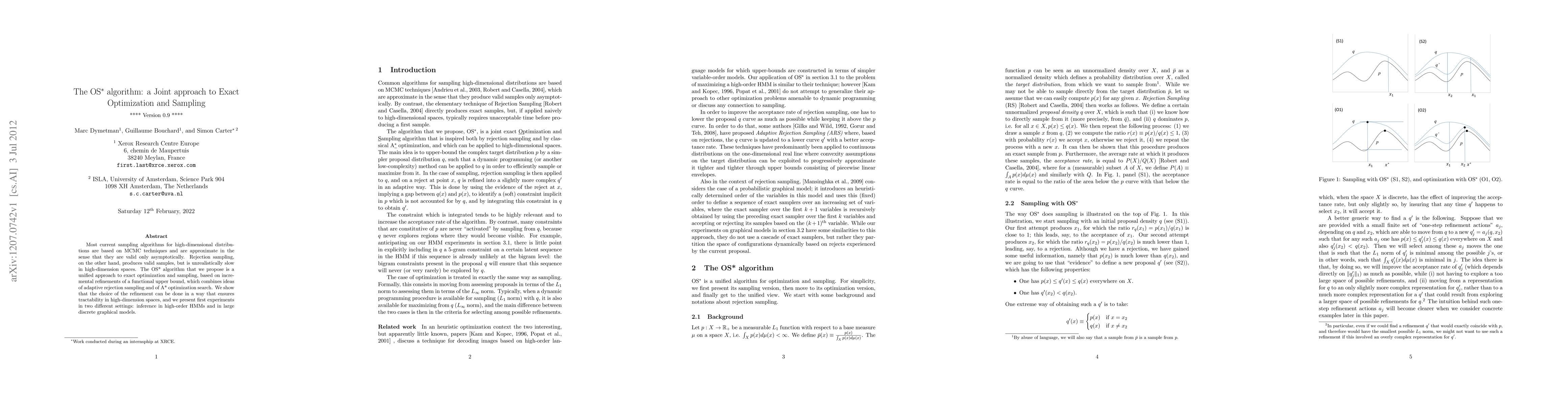 Most current sampling algorithms for high-dimensional distributions are based on MCMC techniques and are approximate in the sense that they are valid only asymptotically. Rejection sampling, on the other hand, produces valid samples, but is unrealistically slow in high-dimension spaces. The OS* algorithm that we propose is a unified approach to exact optimization and sampling, based on incremental refinements of a functional upper bound, which combines ideas of adaptive rejection sampling and of A* optimization search. We show that the choice of the refinement can be done in a way that ensures tractability in high-dimension spaces, and we present first experiments in two different settings: inference in high-order HMMs and in large discrete graphical models.
