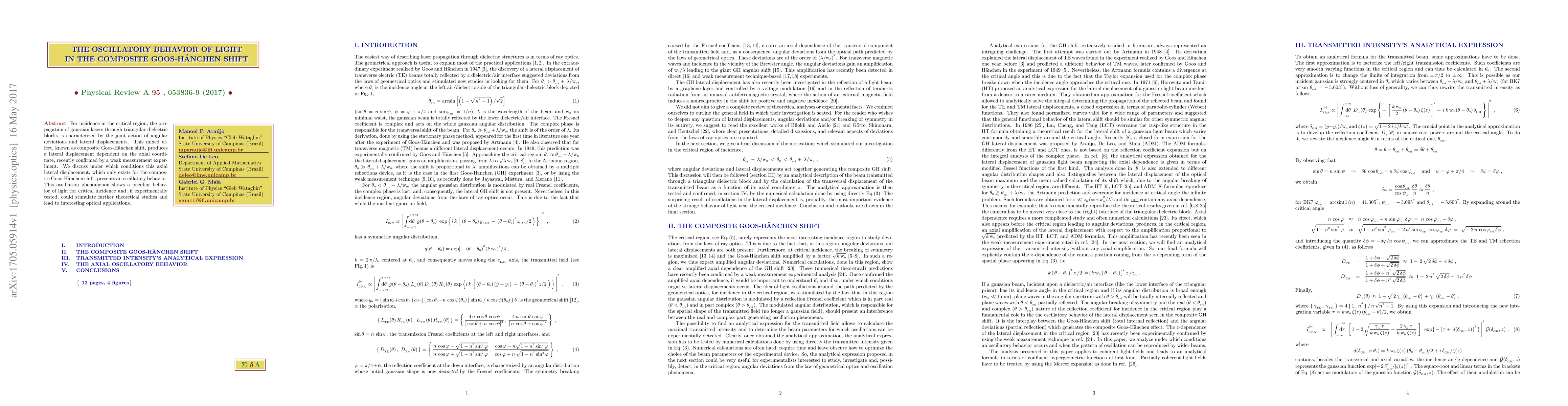 The paper explores the oscillatory behavior of light in the composite Goos-Haenchen shift during Gaussian laser incidence through triangular dielectric blocks, revealing an axial lateral displacement dependent on the axial coordinate. This oscillation phenomenon, observed under specific conditions, may inspire further theoretical research and optical applications.