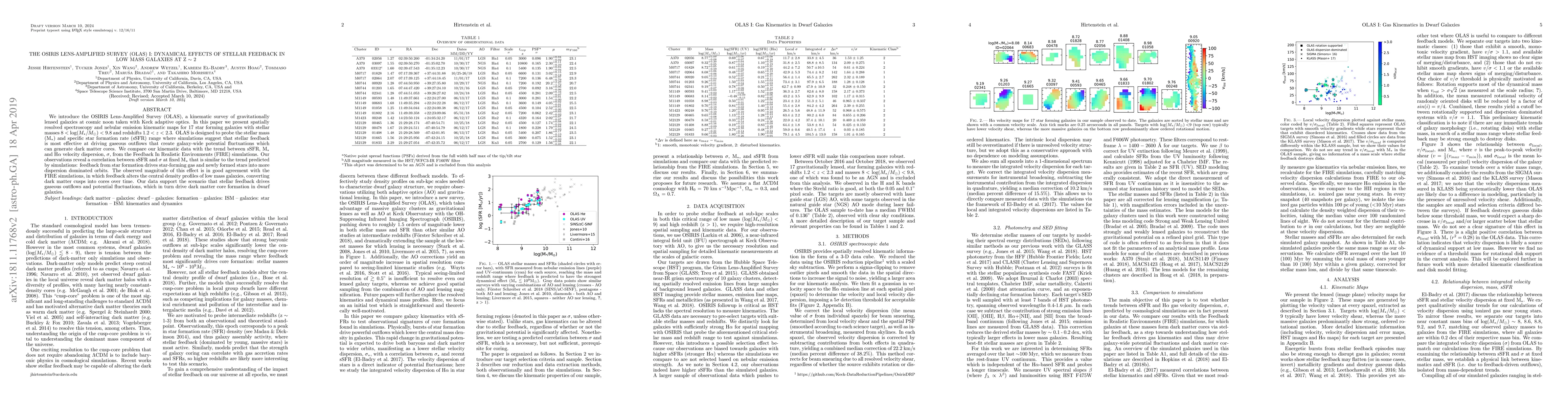 The OSIRIS Lens-Amplified Survey (OLAS) investigates the dynamical effects of stellar feedback in low-mass galaxies at z ~ 2. Observations reveal a correlation between specific star formation rate and Hα velocity dispersion, supporting simulations that stellar feedback drives gaseous outflows and dark matter core formation in dwarf galaxies.