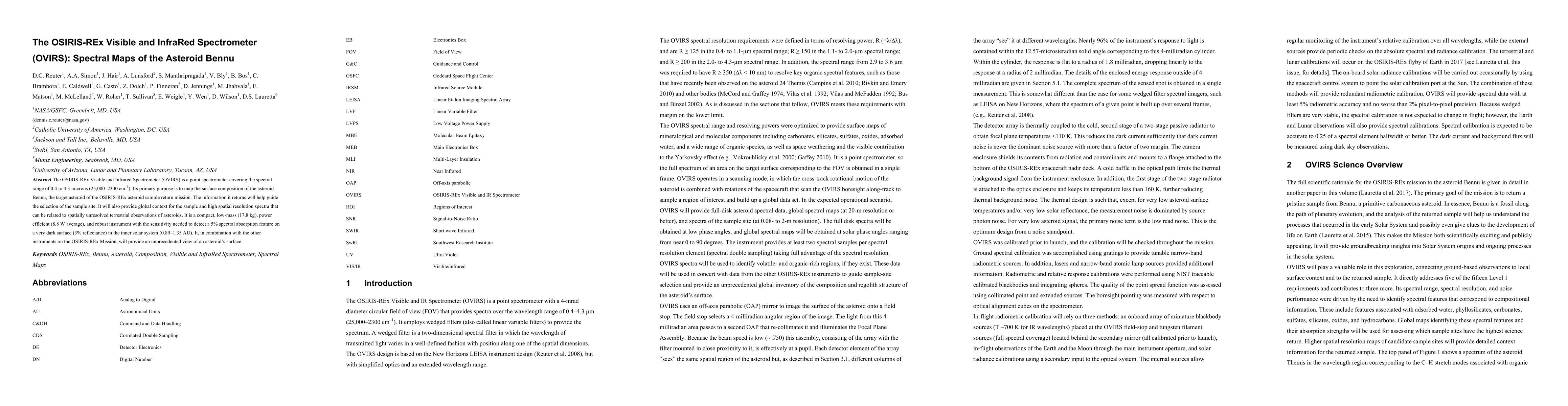 The OSIRIS-REx Visible and InfraRed Spectrometer (OVIRS) maps the surface composition of asteroid Bennu, providing detailed spectral data to guide sample site selection and contextualize terrestrial observations. Its compact design and high sensitivity enable it to detect subtle spectral features on Bennu's dark surface.