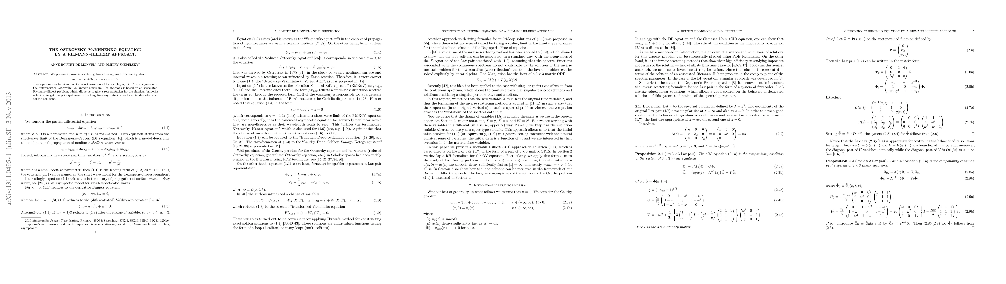 This paper utilizes an inverse scattering transform via a Riemann-Hilbert approach to solve the Ostrovsky-Vakhnenko equation, providing a representation of its smooth solution, long-time asymptotic behavior, and loop soliton solutions.