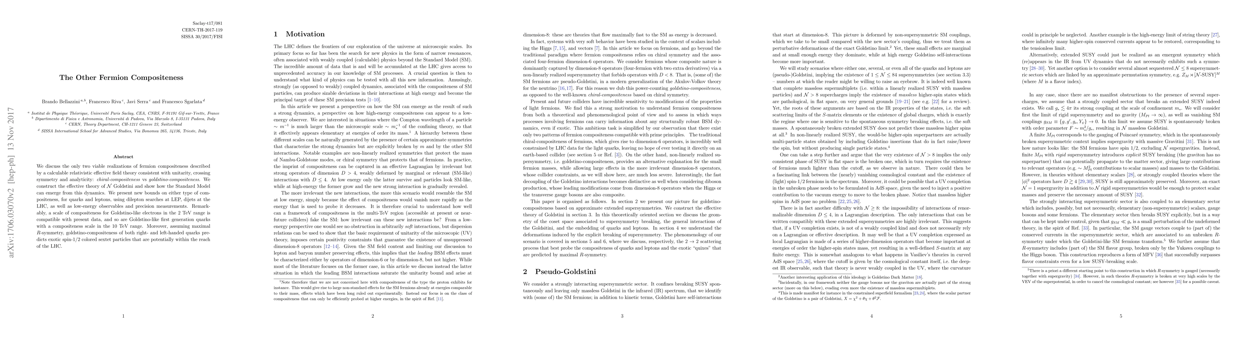 This paper explores two viable forms of fermion compositeness—chiral-compositeness and goldstino-compositeness—in a relativistic effective field theory framework. It presents new bounds on compositeness scales and suggests that goldstino-like particles, including exotic sextets, could be detected at the LHC.